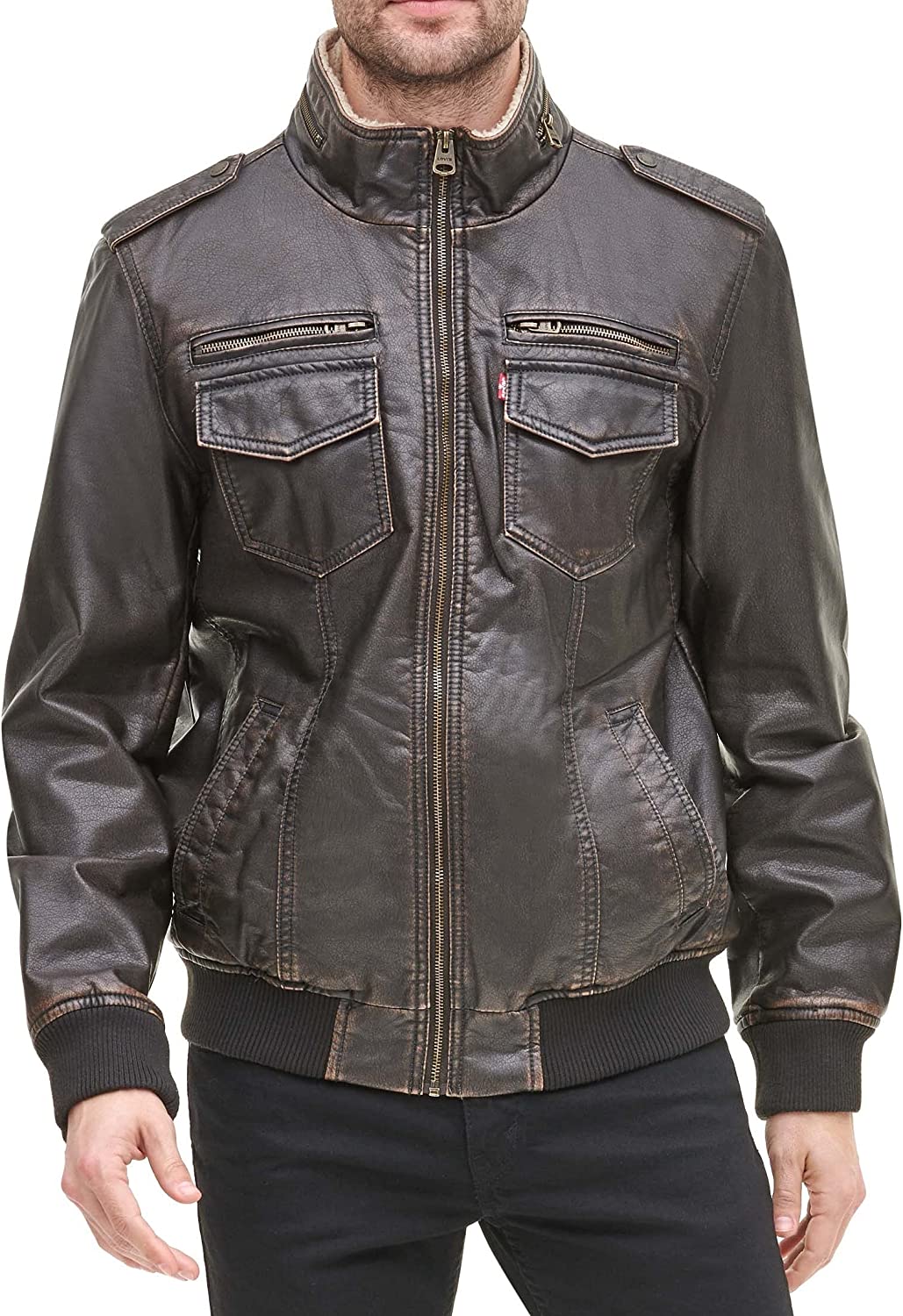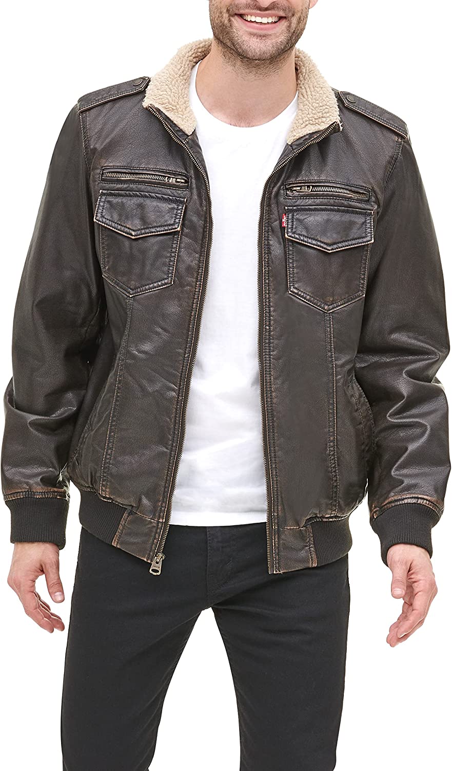 Levi's Men's Faux Leather Sherpa Aviator Bomber Jacket