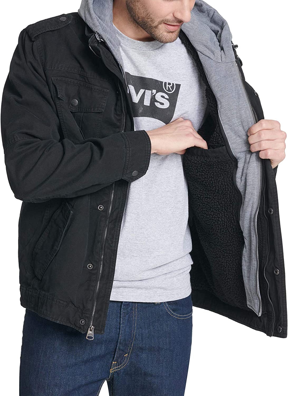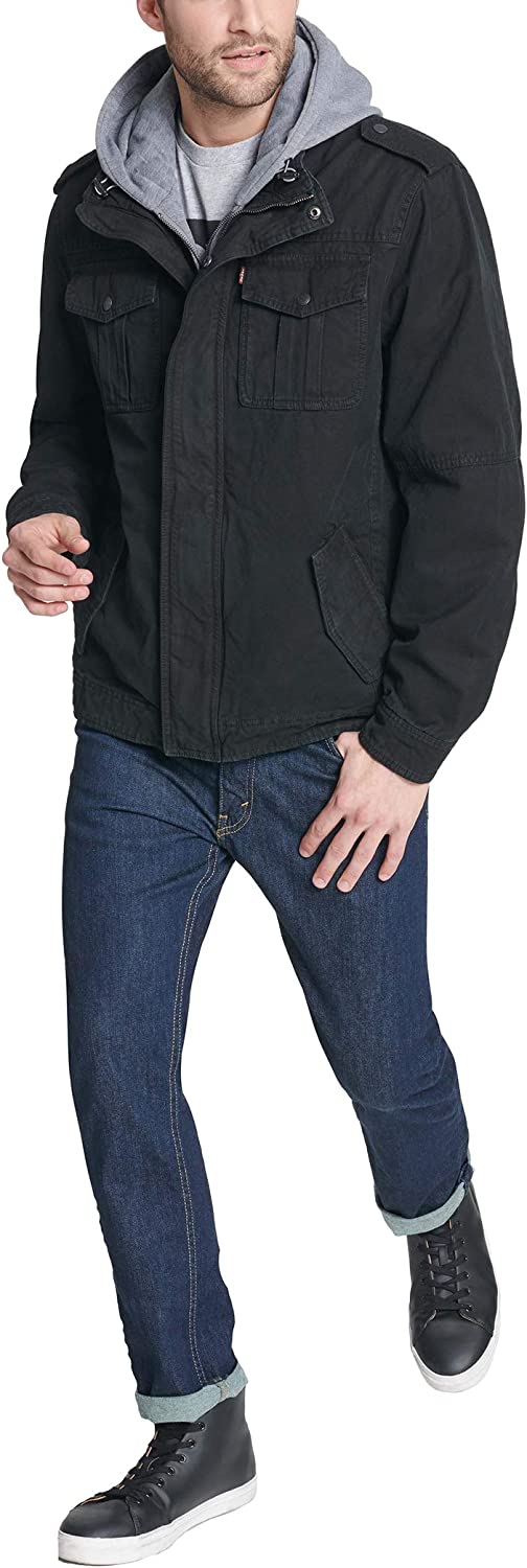 Levi's Men's Washed Cotton Hooded Military Jacket