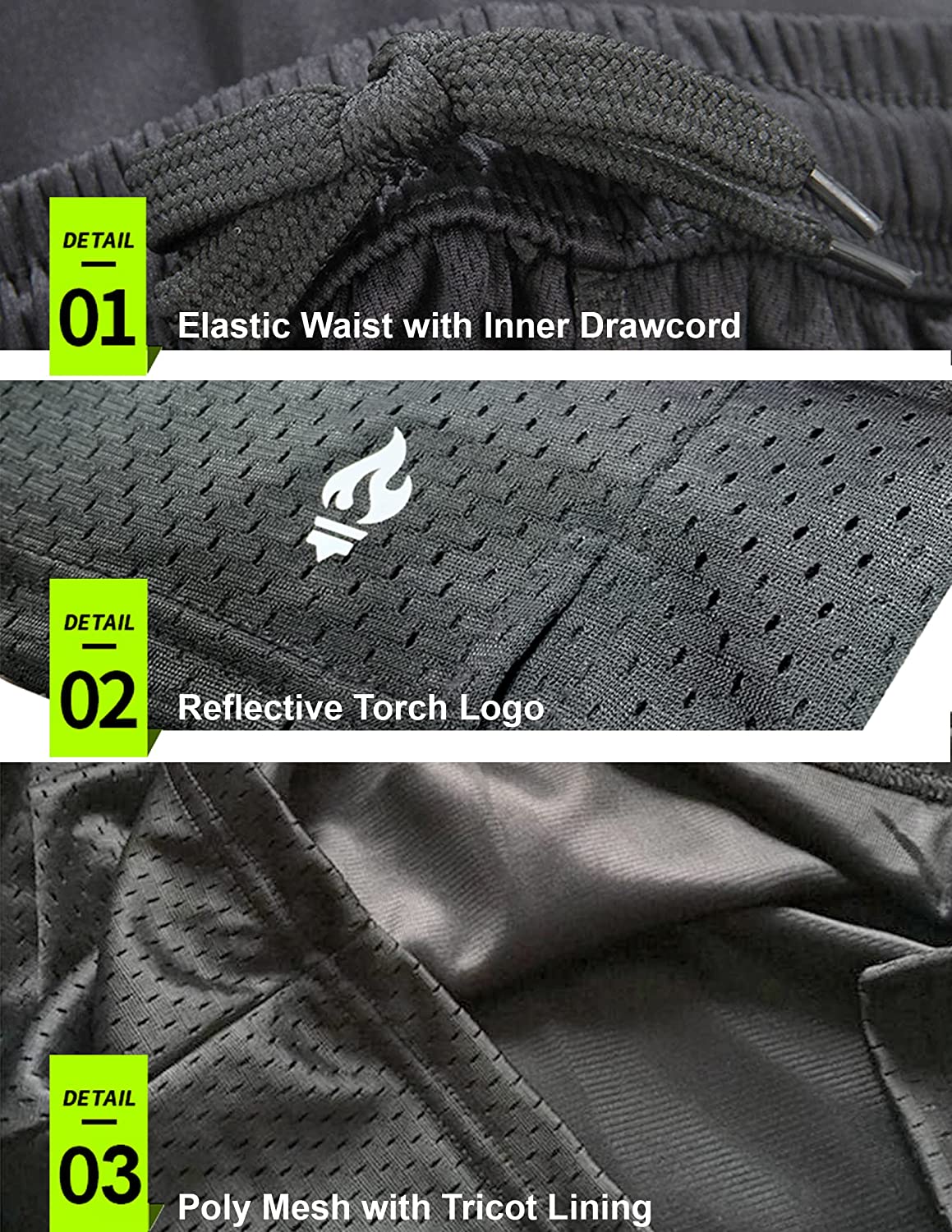 Liberty Pro 5-Pack Men's 9" Athletic Mesh Shorts with Pockets Tech Tricot Lining Quick Dry Performance Activewear