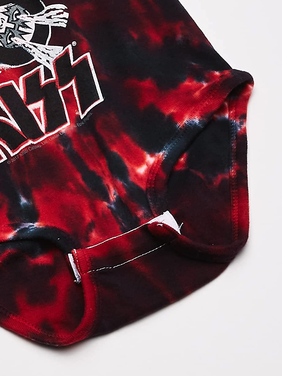 Officially licensed kiss graphic onesie, screen printed in the USA. Hand dyed 100 percent heavyweight cotton for long lasting wear. This classic rock onesie features the kiss logo and four faces set onto a colorful tie dye. Designed to match Liquid Blue adult kiss bust tie dye! perfect for your favorite little one. Made with pride by Liquid Blue