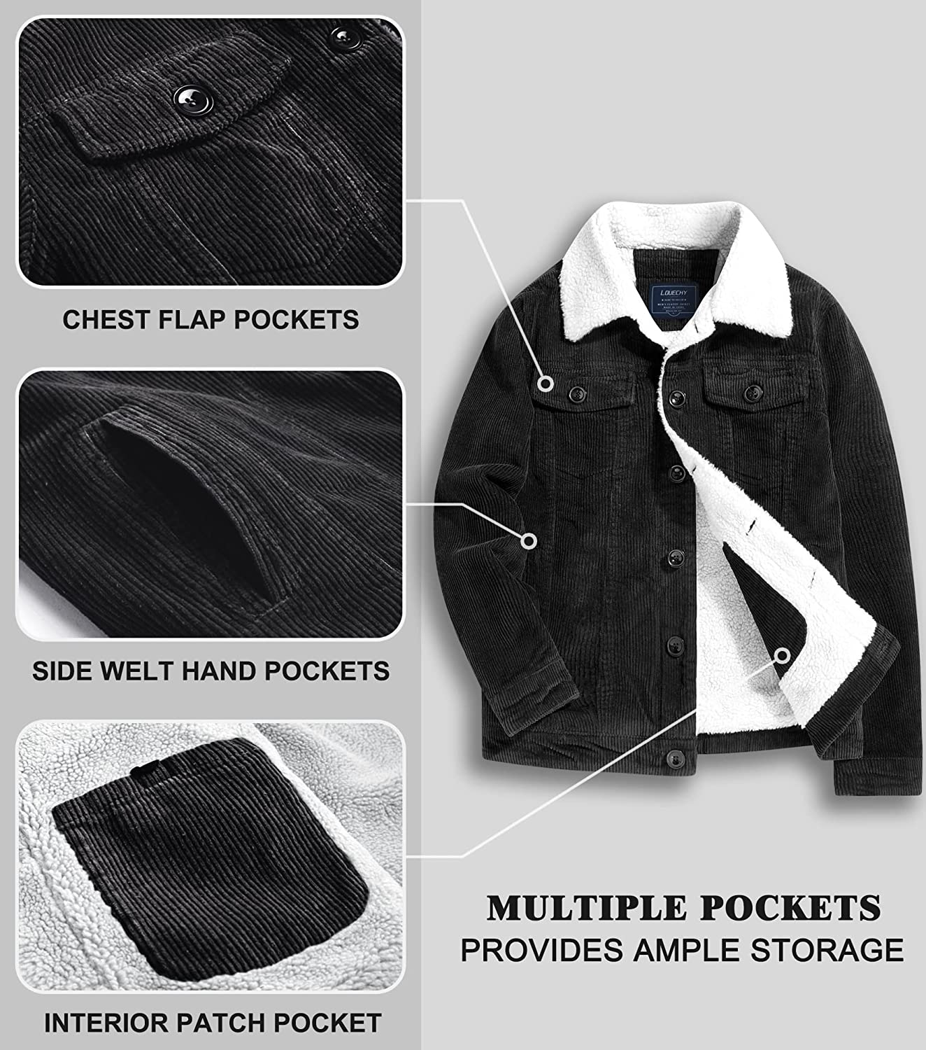 LOUECHY Men's Corduroy Sherpa Lined Trucker Jacket Thickened Warm Winter Coats