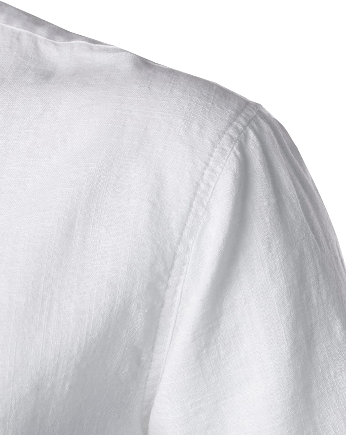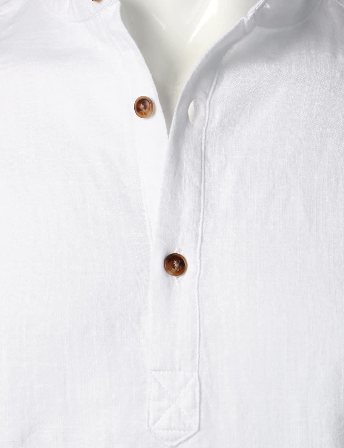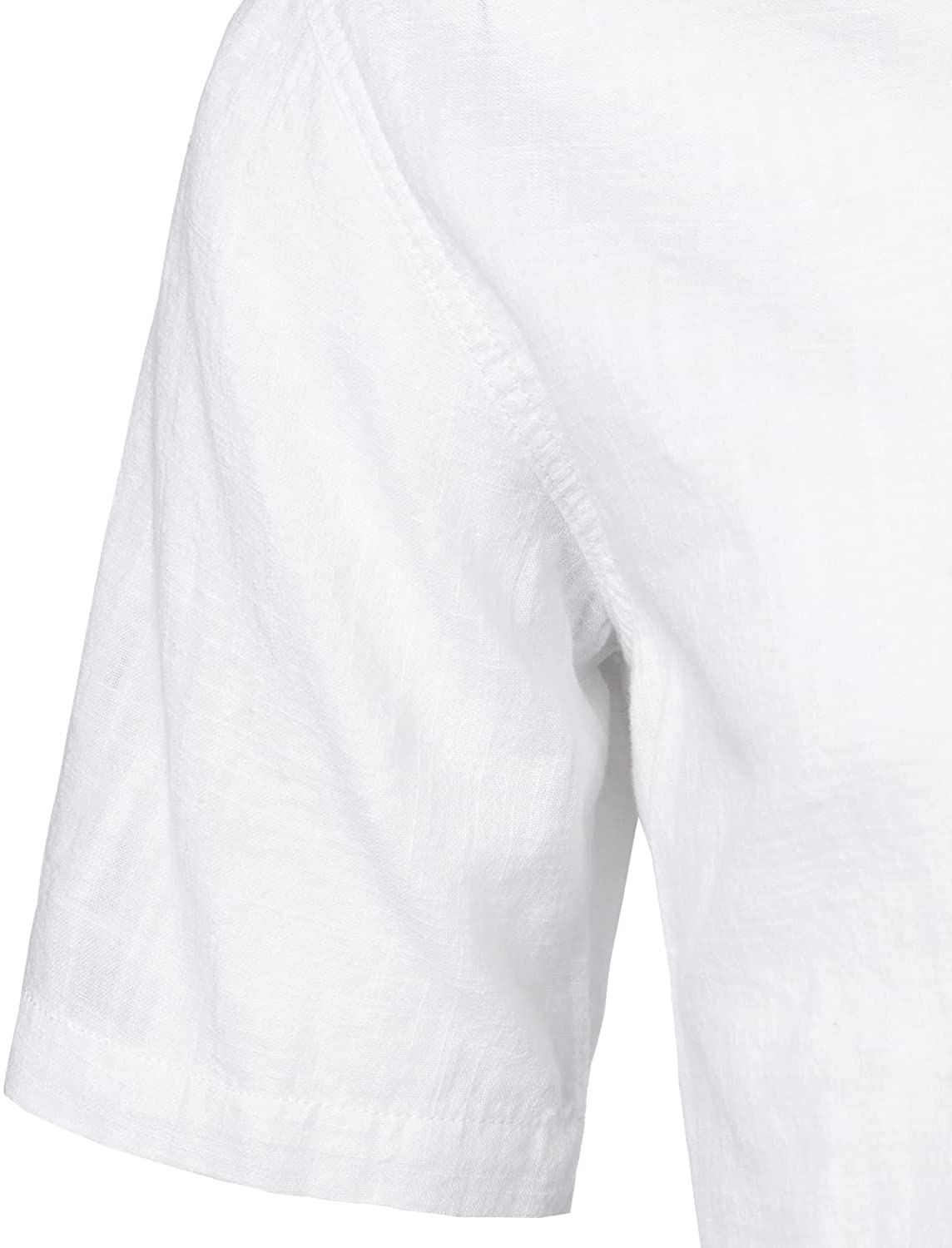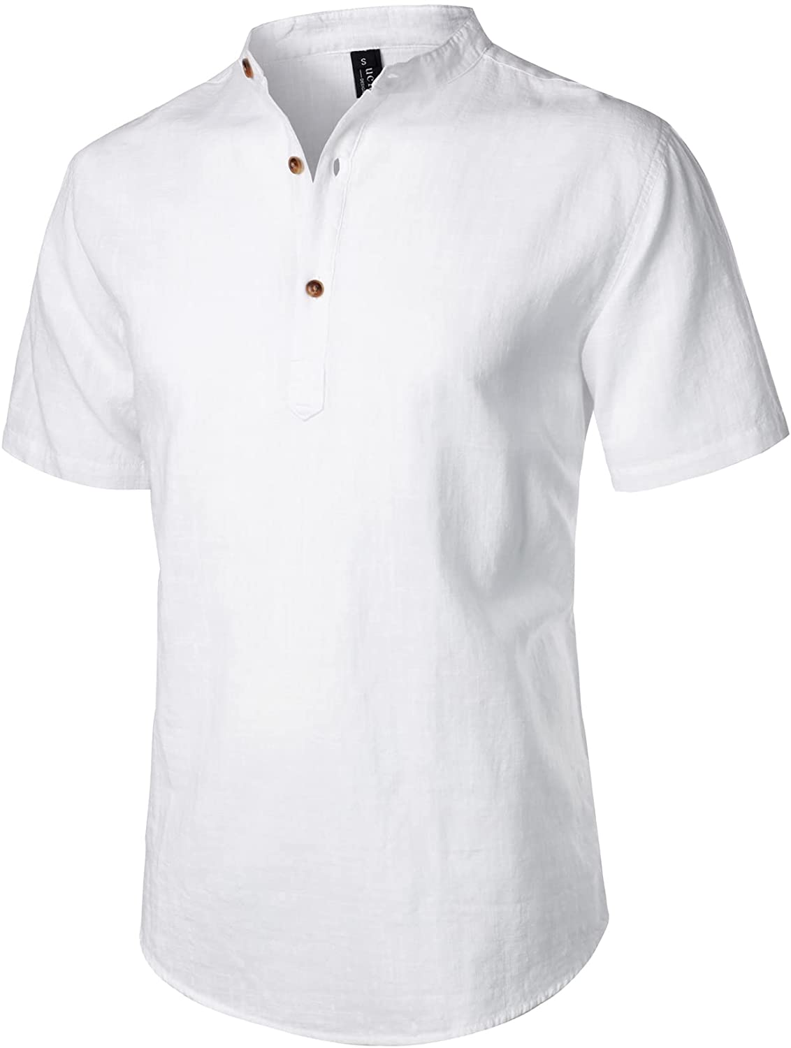 LucMatton Men's Casual Cotton Linen Short Sleeve Henley Shirt Summer Lightweight Banded Collar Beach Tops