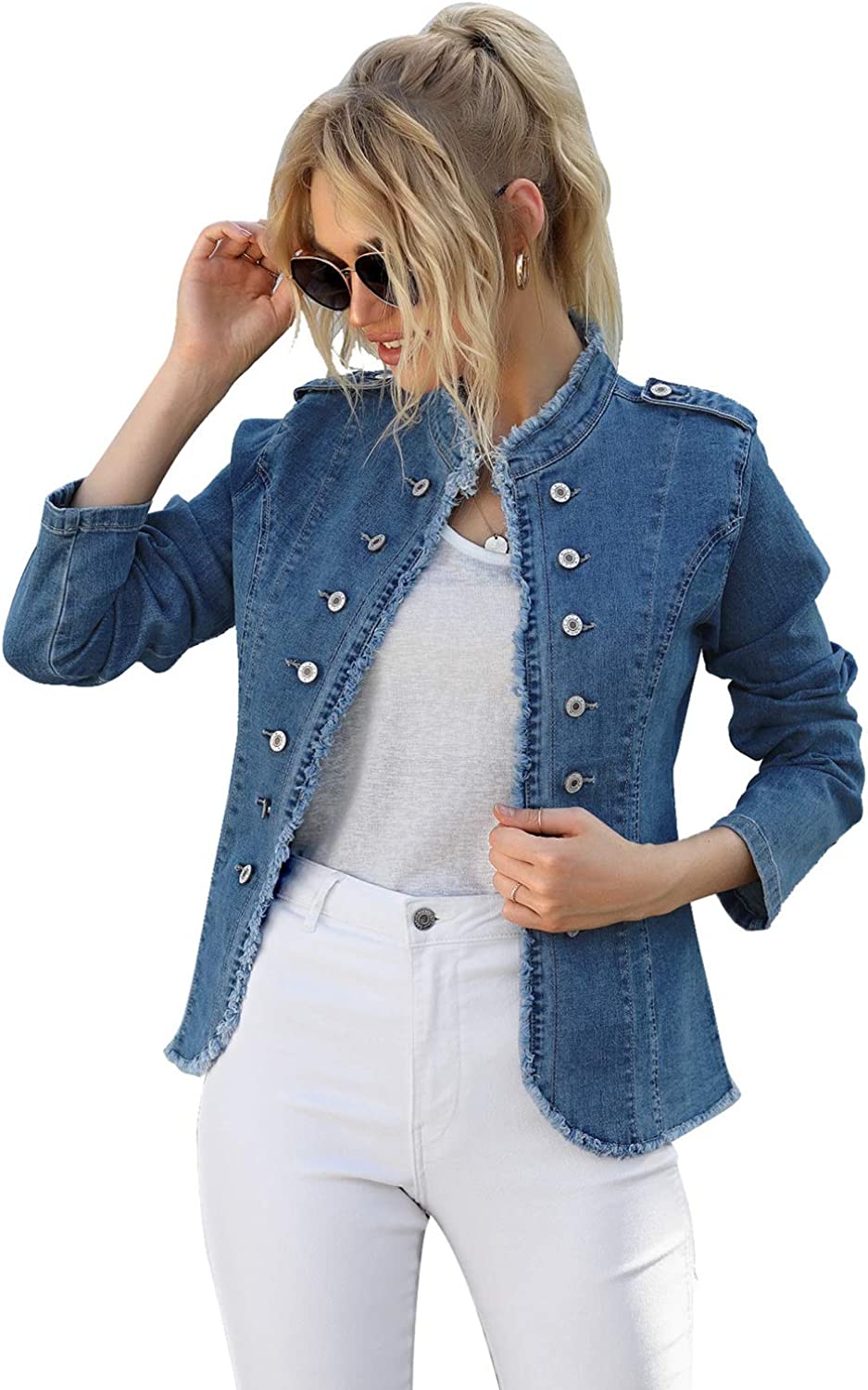 luvamia Women's Open Front Long Sleeves Work Blazer Casual Buttons Jacket Suit