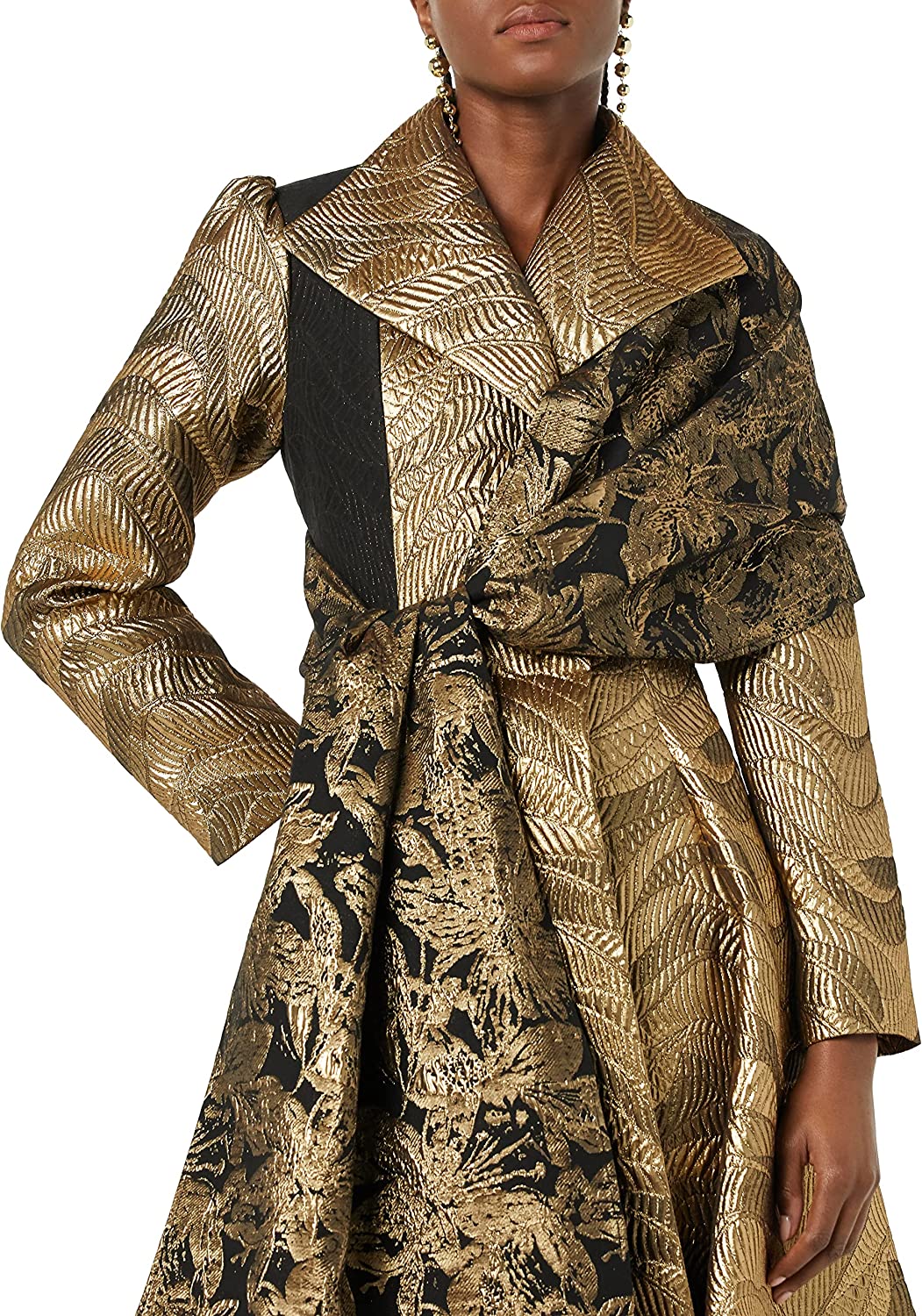 Making the Cut Season 3 Episode 3 Winning Look Jeanette's Metallic Jacquard Coat with Sash