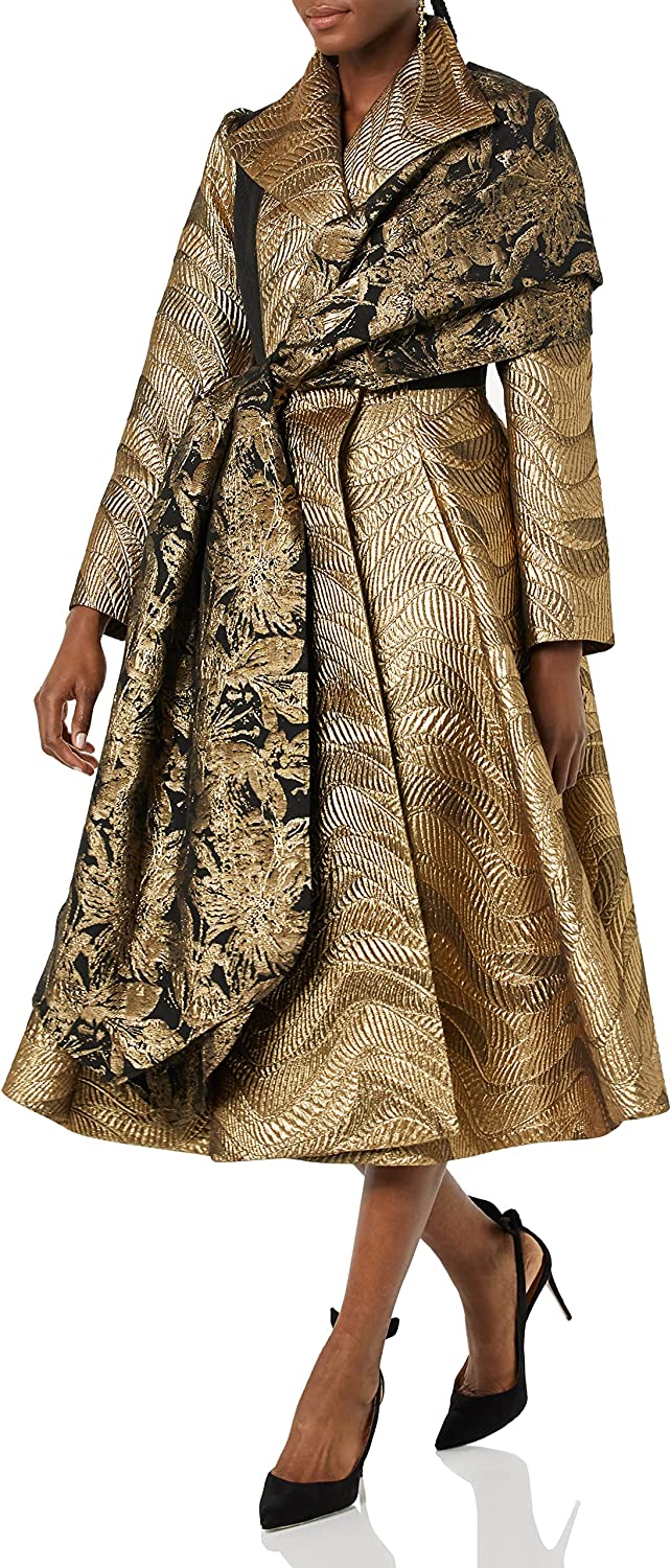 Making the Cut Season 3 Episode 3 Winning Look Jeanette's Metallic Jacquard Coat with Sash