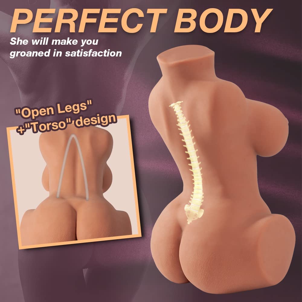 Male Masturbator Sex Doll with Torso and Big Boobs,Brown-Skin Pussy Ass Masturbator Toy for Vagina Anal Breast Play, Realistic Sex Dolls for Men Masturbation,5.6LB