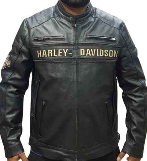 Mens Classic Moto HD Vintage Black Real Cow Leather Biker Riding Motorcycle Jacket