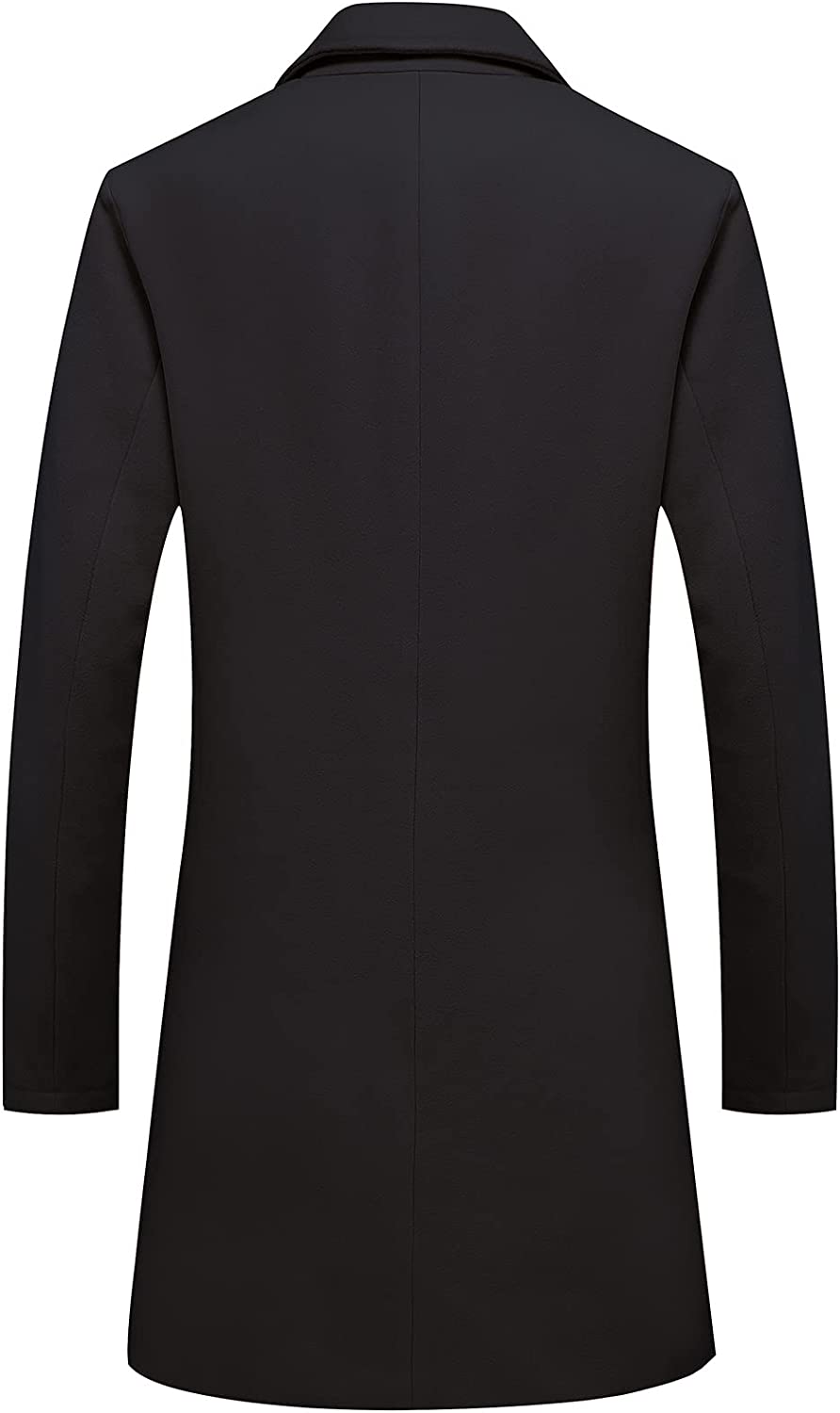 Men's Classic Wool Trench Overcoat Single Breasted Mid Long Wool Blend Top Pea Coats Jackets