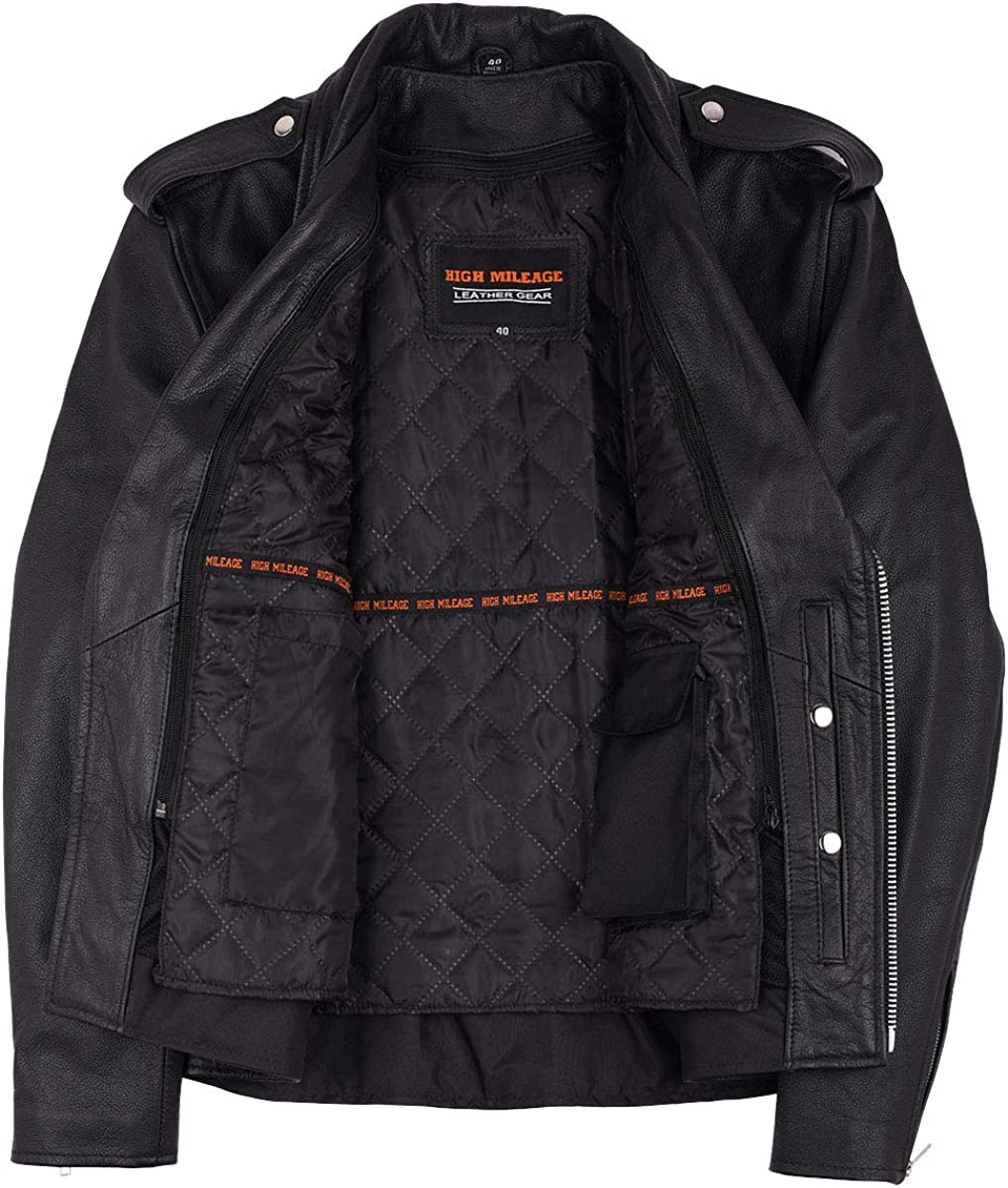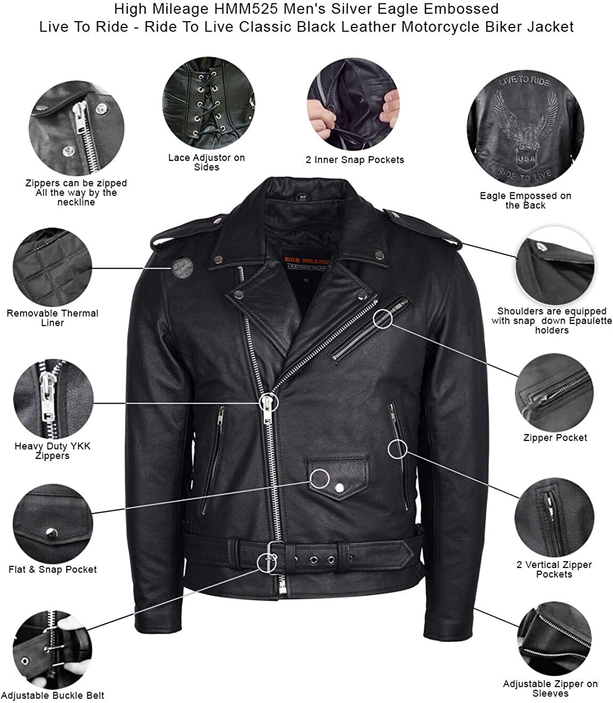 Men's Eagle Embossed Live To Ride - Ride To Live Classic Black Leather Motorcycle Biker Jacket