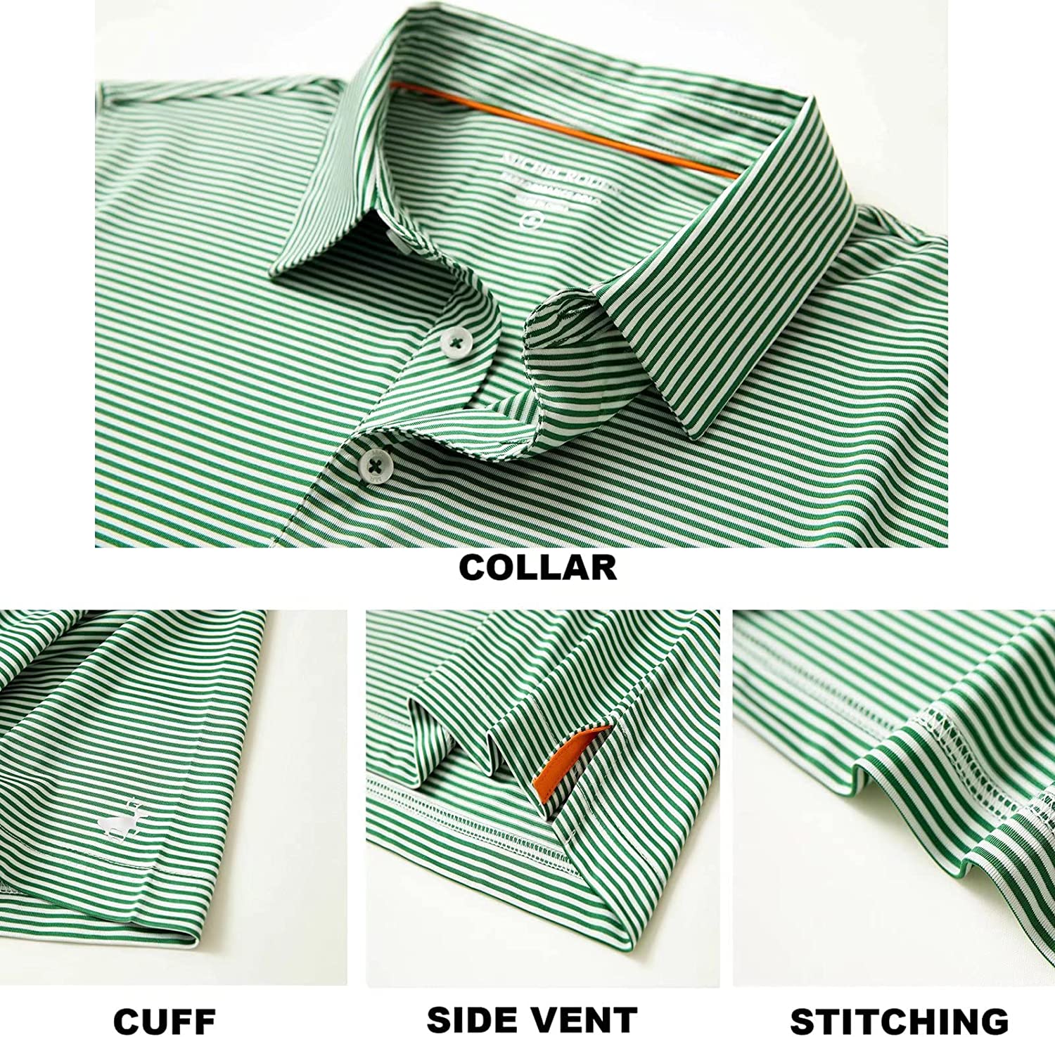 Mens Golf Shirt Moisture Wicking Dry Fit Performance Sport Short Sleeve Striped Golf Polo Shirts for Men