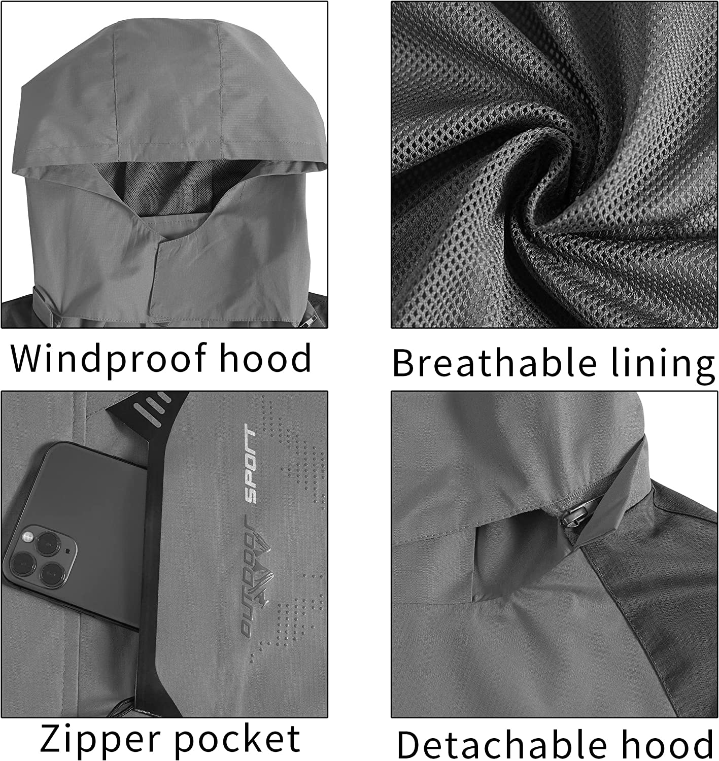 Mens Rain Jacket Waterproof with Hooded Hiking Coat Lightweight Windbreaker