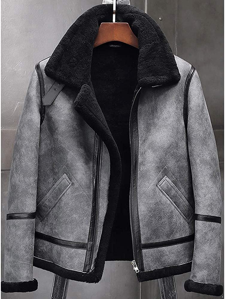 Mens Sheepskin Shearling Jacket B3 Flight Jacket Aviator Winter Coat Fur Bomber Leather Jacket Brown