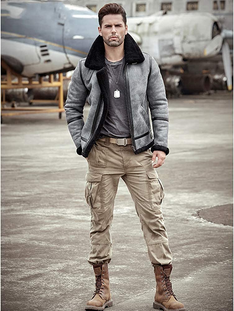Mens Sheepskin Shearling Jacket B3 Flight Jacket Aviator Winter Coat Fur Bomber Leather Jacket Brown