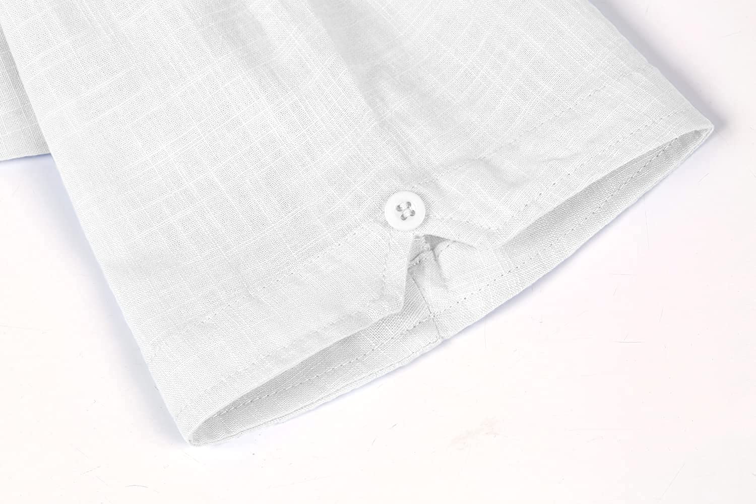 Mens Short Sleeve Shirts Button Down Tops Beach Linen Fishing Tees Spread Collar Plain Summer Blouses