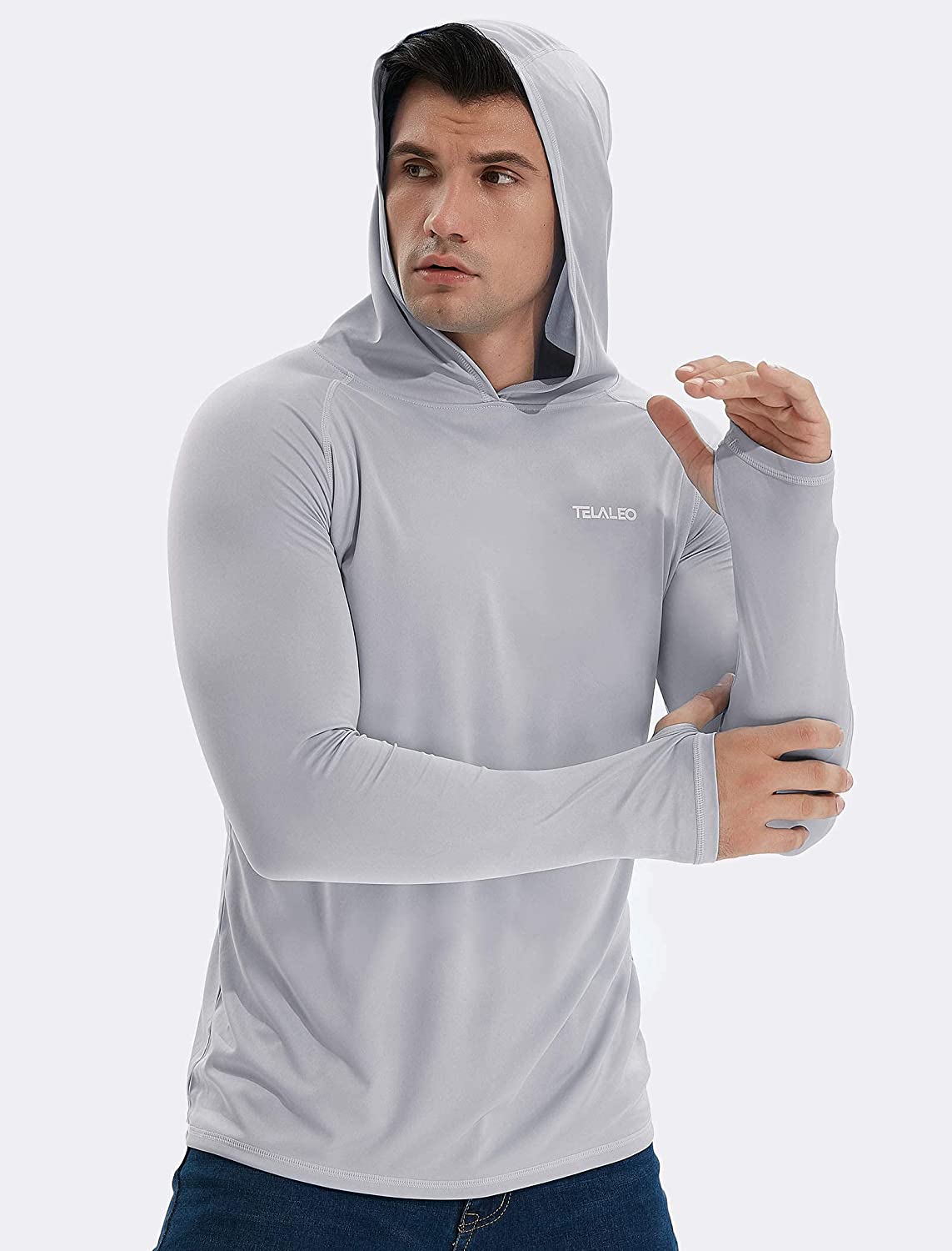 Men's UPF 50+ Sun Protection Lightweight Hoodie Performance Long Sleeve SPF UV Shirt For Fishing Running Hiking