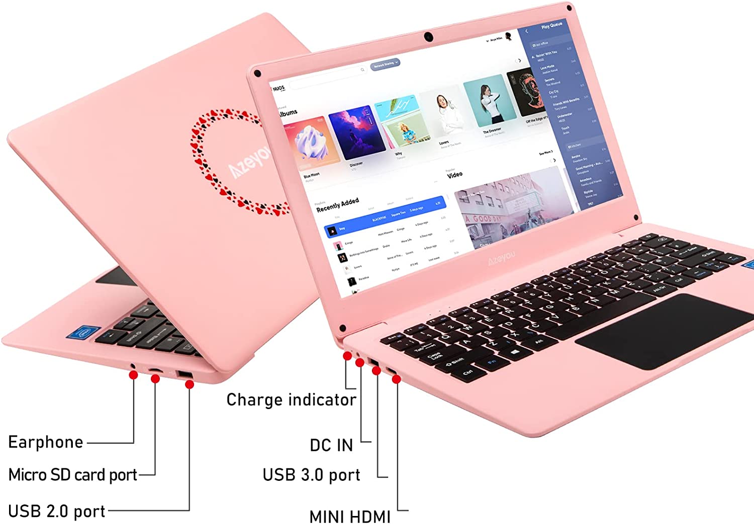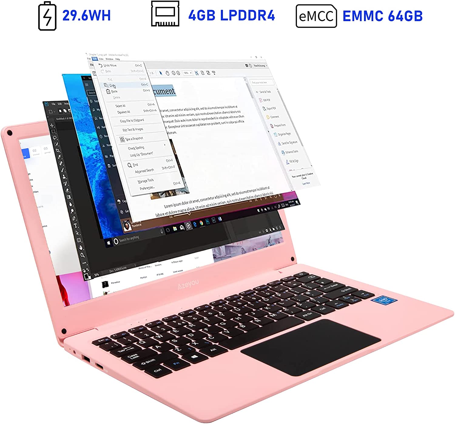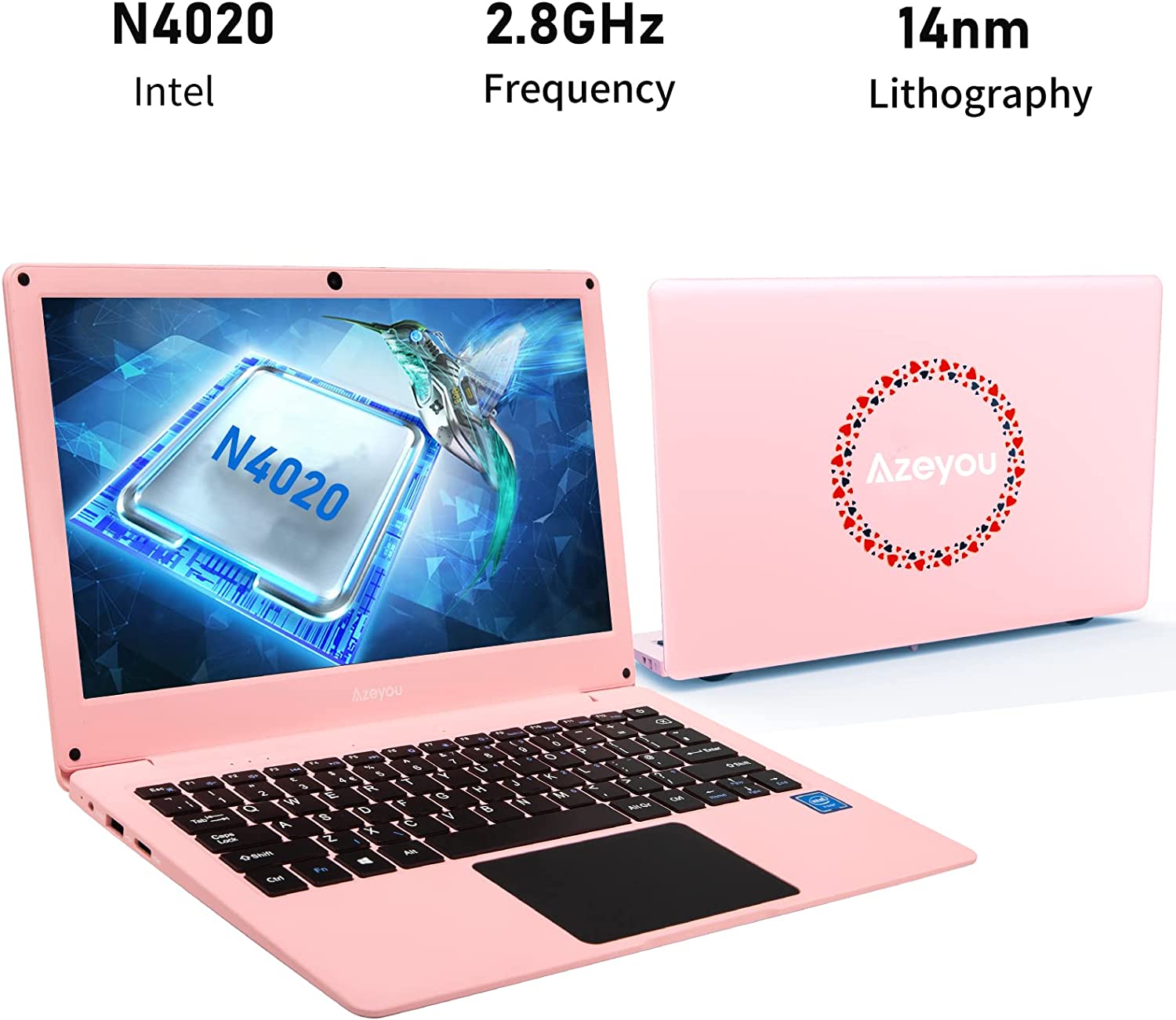 Mini Laptop Student 11.6" Windows 10 HD Display Laptop, Intel Celeron N4020 Processor, 4GB RAM,64GB eMMC Storage, 2MP Webcam, Azeyou U10 Ultra Slim and Light Portable Notebook PC for Student-Pink