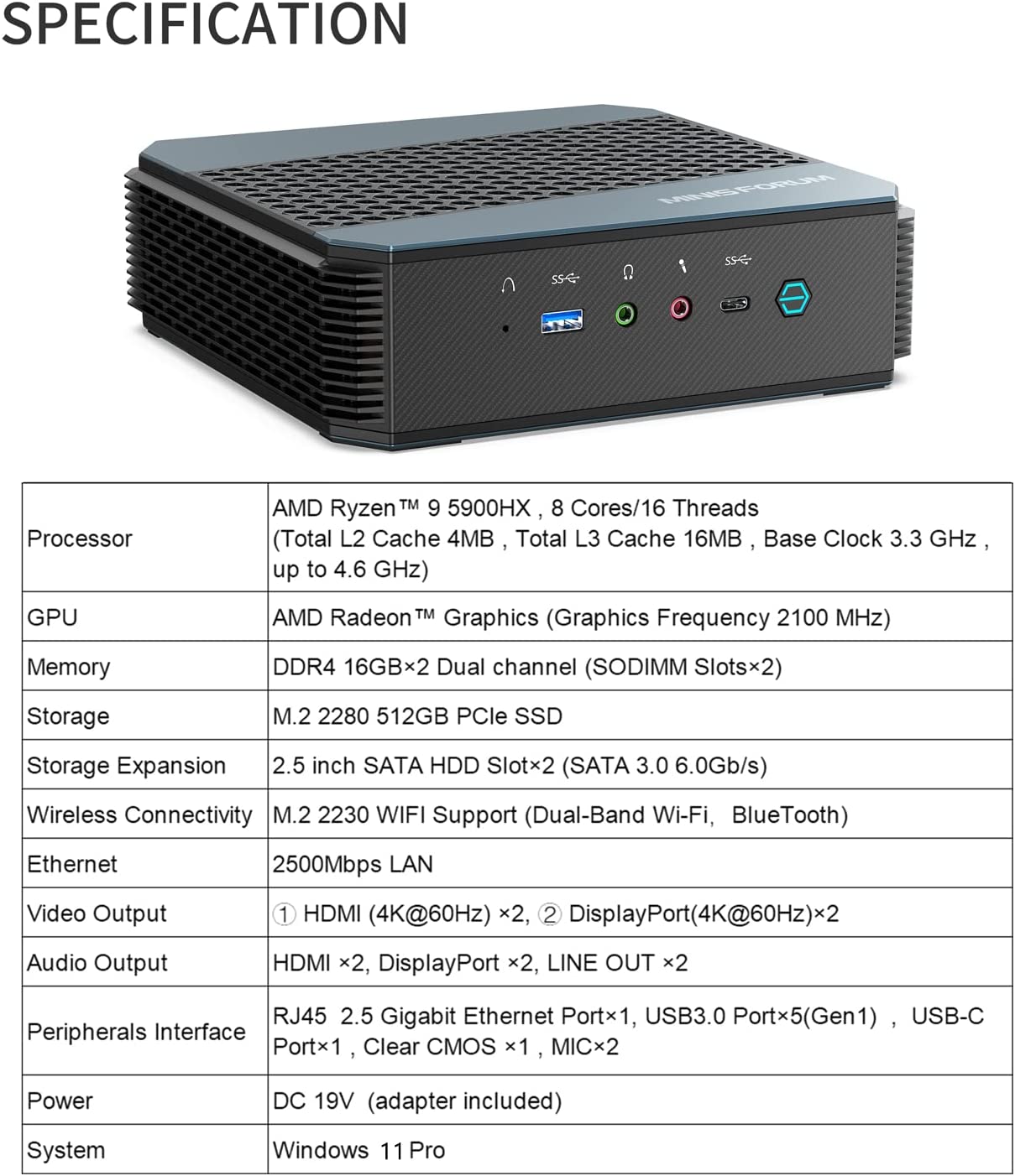 1.AMD Ryzen 9 5900HX CPU Mini PC.