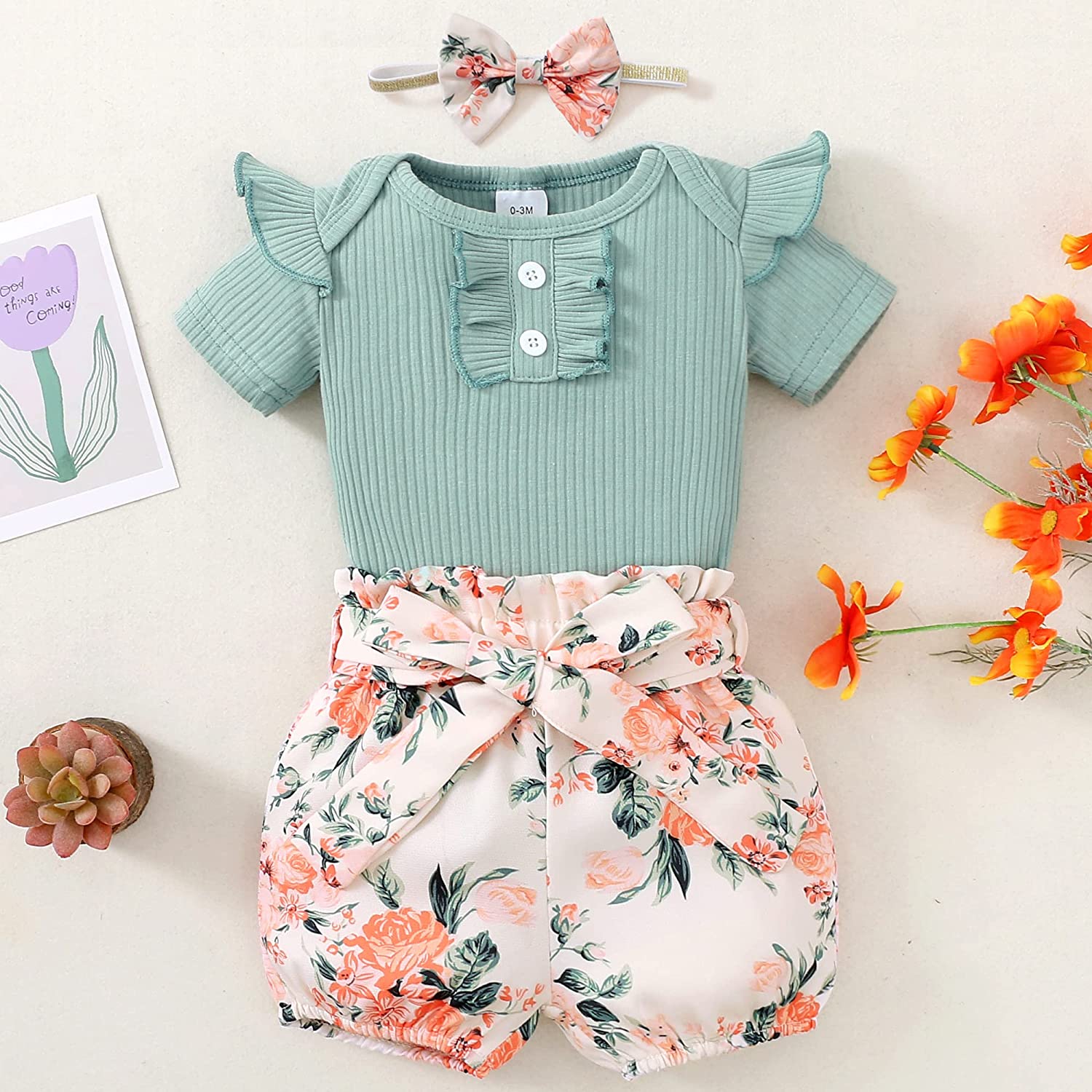 Mioglrie Newborn Baby Girl Clothes Romper Shorts Set Cute Infant Summer Outfits Cotton Baby Clothes for Girls