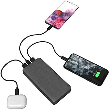 Charge multiple devices simultaneously whether you are at home, work or even out camping, with the mophie Powerstation XXL Power Bank. Featuring a 20,000 mAh large internal battery, it juices up your smartphones, tablets, and other USB-enabled devices, and holds up to 73+ hours of battery life in case of a power emergency. Charges 3 devices simultaneously via (1) fast charging 18W USB-C Power Delivery Port that ensures up to 50 percent charge in just 30 minutes, and (2) USB-A Ports. Its premium fabric finish prevents the outer surface from scuffs and scratches and the textured design around the perimeter of power station complements the fabric finish. This portable power bank includes a USB-A to USB-C power cord to charge itself, and other devices effectively. No on/off button or switch is required, as it automatically starts charging once your device is plugged in, making it super user-friendly. There is a built-in 4-light LED indicator that notifies you the battery levels of the power bank as well as your device.