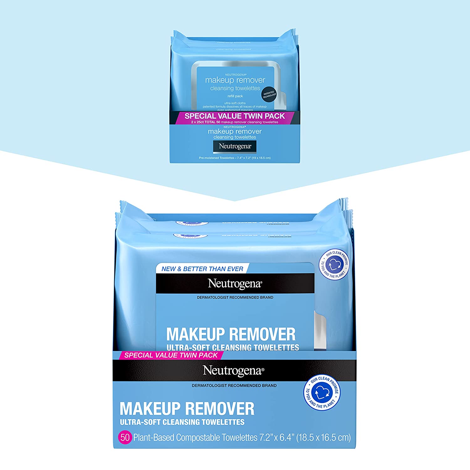 Remove makeup in one easy step with Neutrogena Makeup Remover Face Wipes. These soft and gentle pre-moistened facial cleansing towelettes effectively dissolve all traces of dirt, oil and makeup--even waterproof mascara-- for clean, fresh looking skin every day. Our makeup remover features an effective micellar-infused, triple emollient formula that leaves skin feeling refreshed, nourished, conditioned and thoroughly clean with no heavy residue. These facial towelettes also remove sweat, sunscreen, and pollution from skin with no need to rinse after use. These daily face wipes are formulated to be gentle on the sensitive eye area. The makeup removing wet wipes are formulated without phthalates, parabens, sulfates, alcohols, soaps, or dyes and are ophthalmologist-, dermatologist-, and allergy-tested. Designed with the earth in mind, the compostable wipes are made with 100% plant-based fibers and biodegrade in 35 days in home compost.