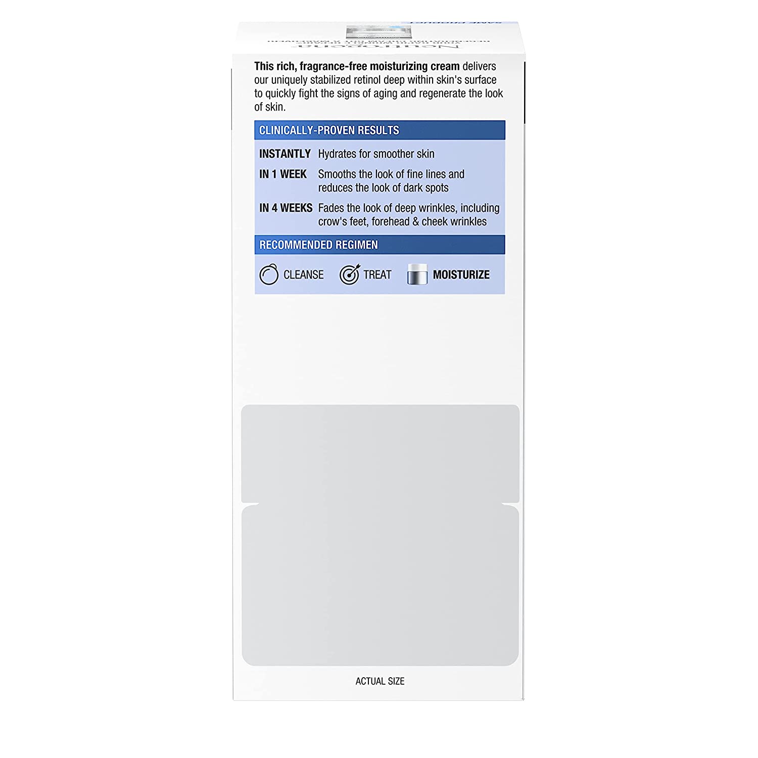 Get visible results with Neutrogena Rapid Wrinkle Repair Retinol Regenerating Cream. This fragrance-free anti-wrinkle face & neck cream smooths the look of fine lines and provides moisture-rich replenishers. The retinol face & neck cream helps fade the look of deep wrinkles, including crow's feet and forehead and cheek wrinkles. Our clinically proven anti-wrinkle formula, this rich fragrance-free facial moisturizer delivers retinol, a dermatologist-proven form of vitamin A and powerful ingredient that fights fine lines, dullness, wrinkles and dark spots, deep within skin's surface quickly and effectively, for visibly smoother and younger-looking skin in just one week. Hyaluronic acid adds plumping moisture to help hydrate and rejuvenate the look of skin. Regenerating Retinol Cream is suitable for daily use in a skincare routine on all skin tones. Plus, it is free of parabens, mineral oil and dyes and comes from the #1 retinol brand used most by dermatologists.