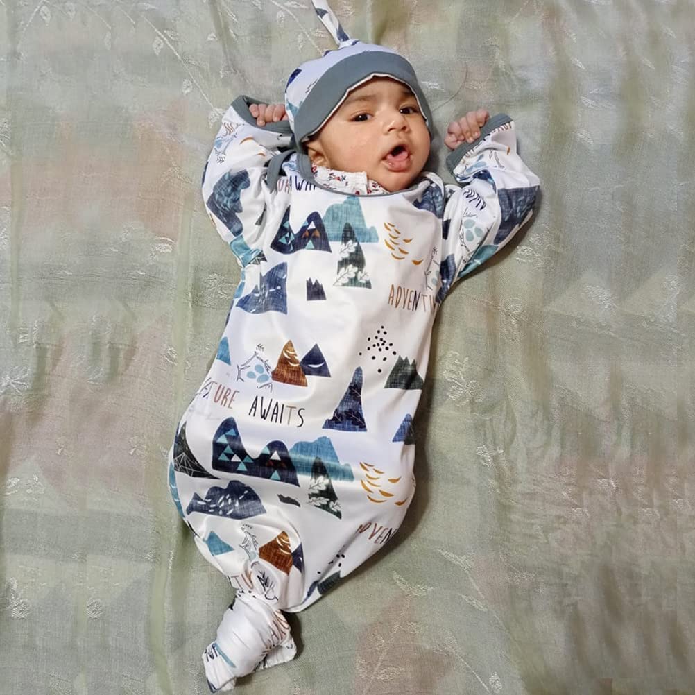 Newborn Baby Boys Girls Cartoon Sleeper Gown Long Sleeve Nightgown Hat Outfits