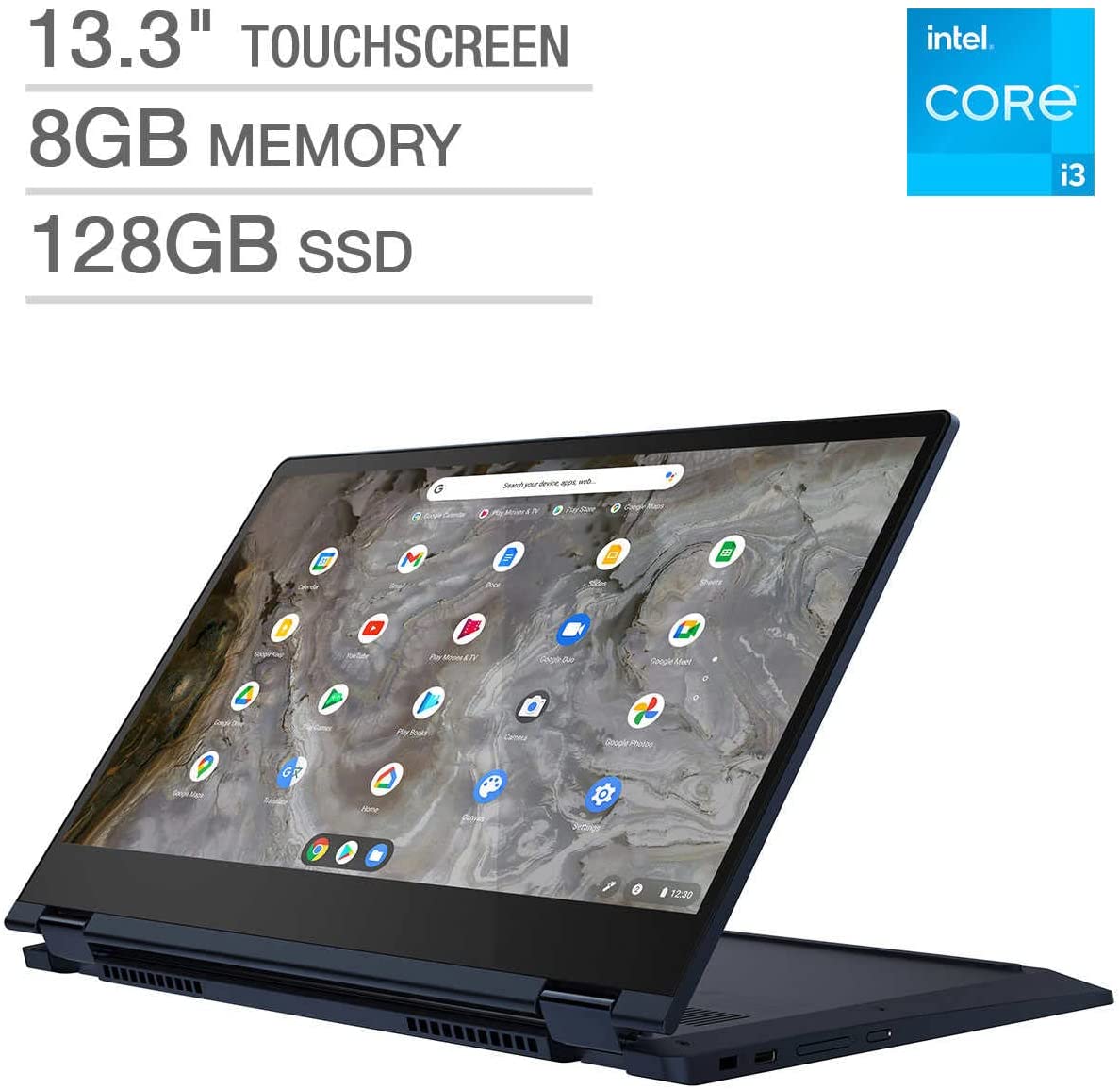 The Chromebook Flex 5 (13", 5) is powered by Intel 11th gen Core i3 processor and a long lasting battery life to let you get things done quickly and easily with all your favorite Chromebook features. Use your Google Account for seamless access to your files, photos, music and you could start an immersive entertainment experience with the user-facing stereo speakers and IPS FHD display or you could enjoy more with apps downloaded from the Google Play Store. Breathtaking to behold whether in tablet, tent, stand, laptop mode or any angle in between, Chromebook Flex 5 (13", 5) delivers a slim and light 360° convertible design. The 11th Gen InteI Core i3 processor offers groundbreaking intelligent performance features that adapt to you and the things you do, for a more personalized, intuitive and responsive Chromebook experience. Enjoy the streamlined interface of Chrome OS—with access to a rich library of apps on Google Play, custom Google Maps wallpapers and images, and more.