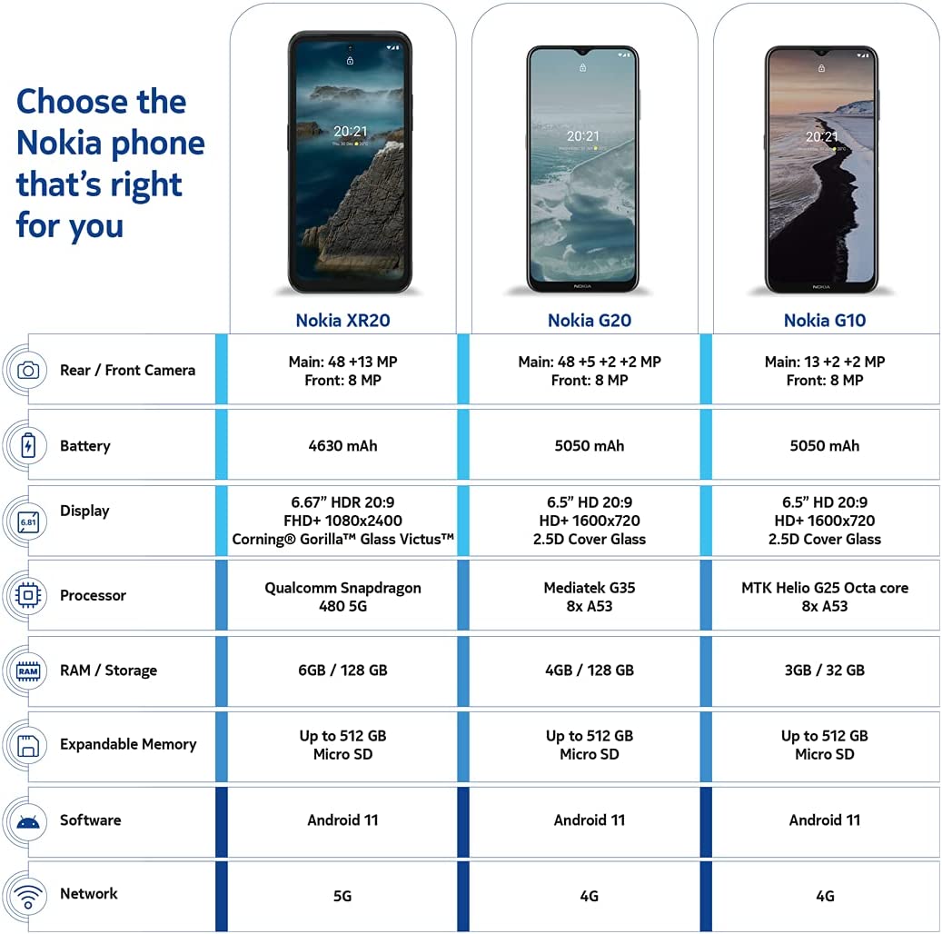 The Nokia XR20 is built for today's hectic mobile lifestyle. With a military-grade outer body, and the toughest screen on the market today, the Nokia XR20 can take almost anything life can throw at it. Plus, with 2 years of OS upgrades, your phone will stand the test of time like no other device you've seen. Give it your best shot.