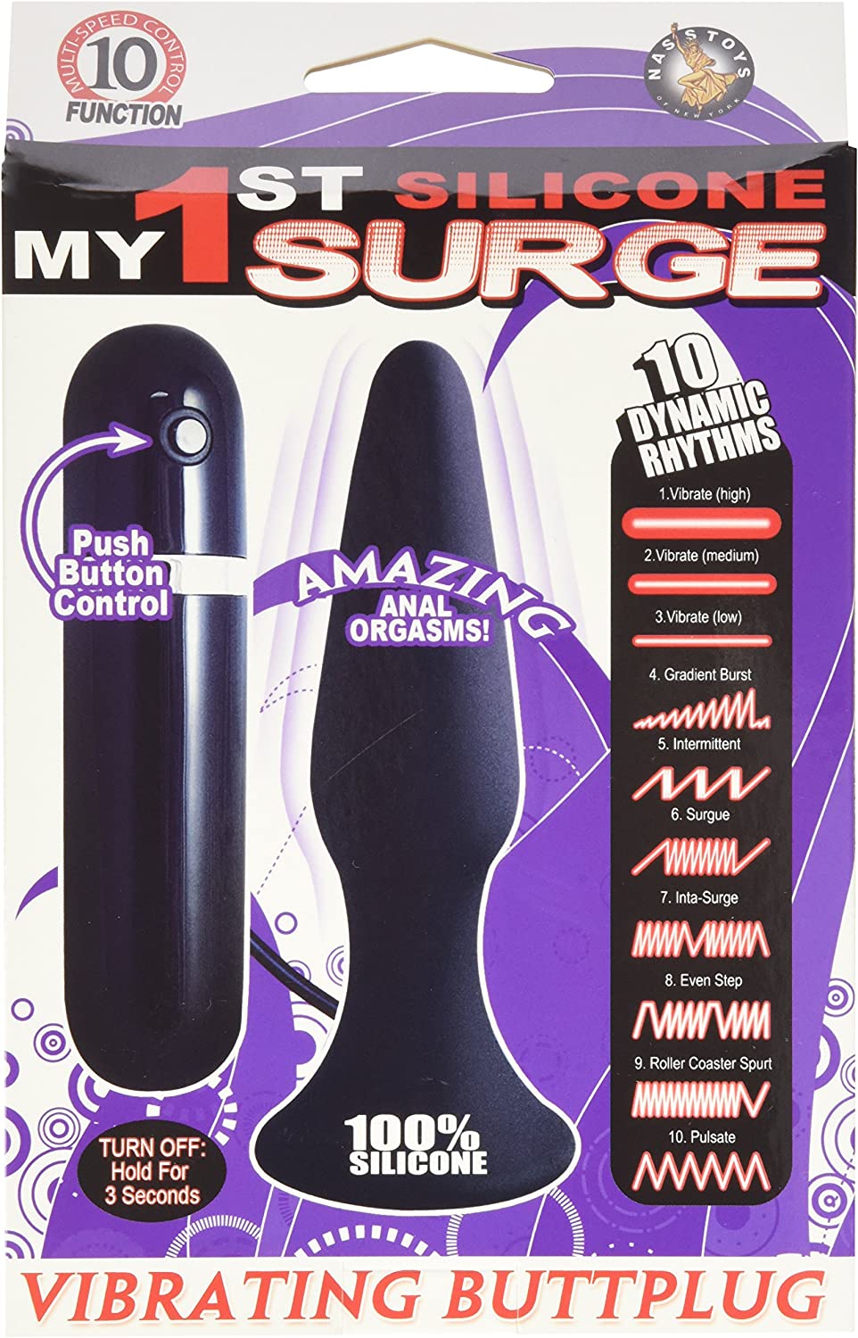 Novelties By Nasswalk My First Silicone Surge Vibrating Butt Plug 5" Inch Black