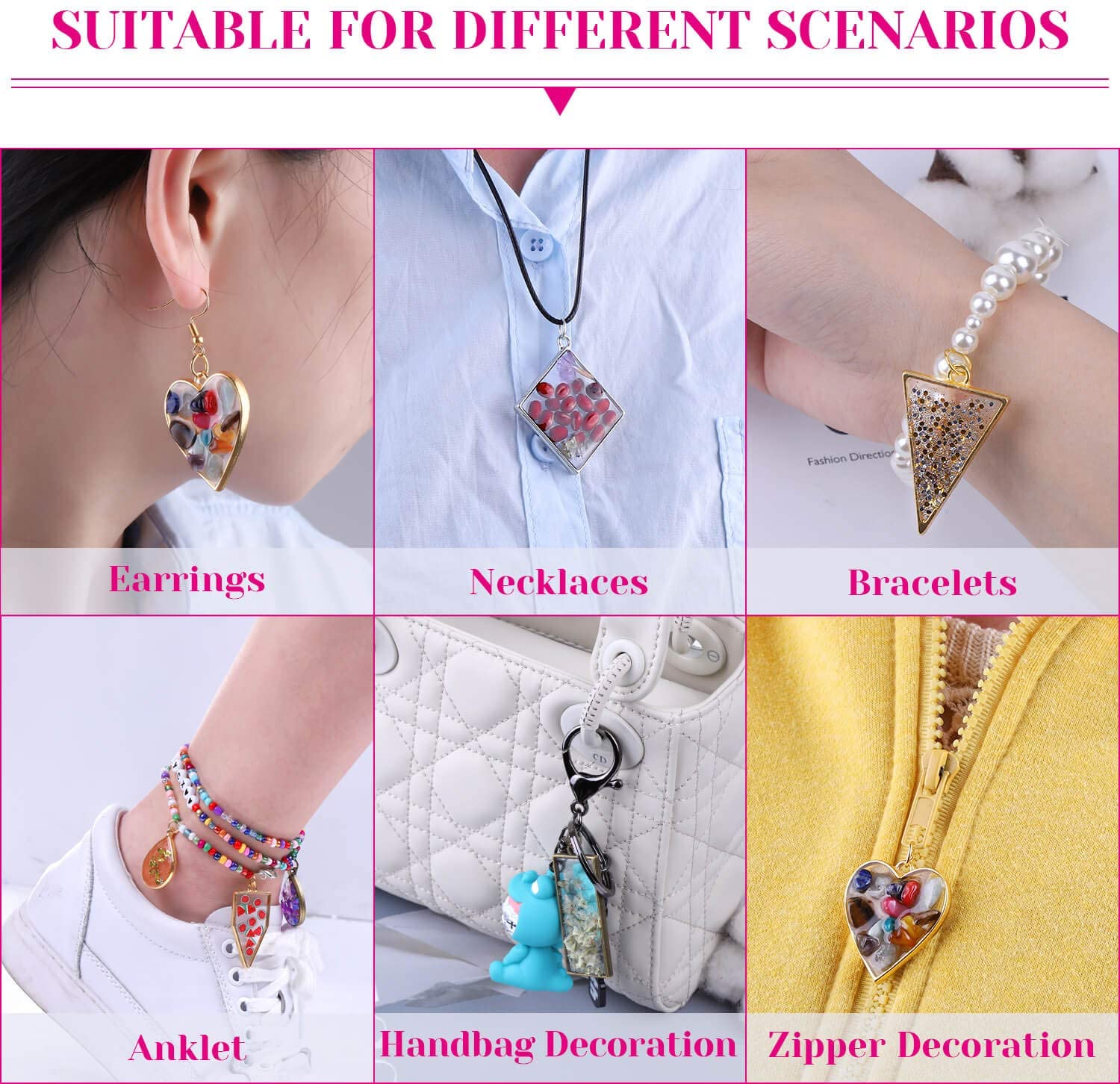 60 pieces resin craft bezel in 10 shapes and 3 colors