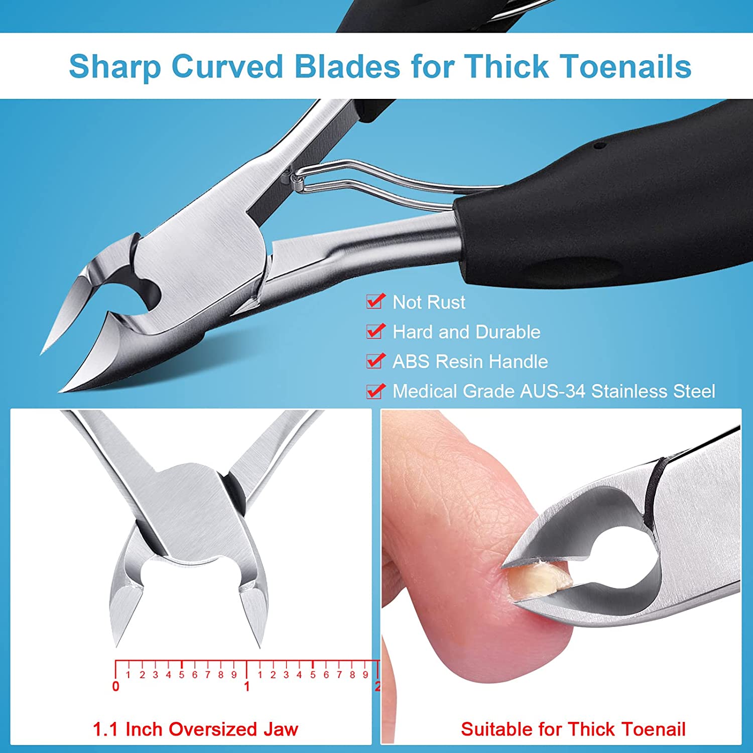 Orelex Toenail Clippers, Toe Nail Clippers for Thick Nails & Ingrown Toenail, Heavy Duty Nail Clipper for Men and Adults, Seniors, Professional, Super Sharp Curved Blade Grooming Tool