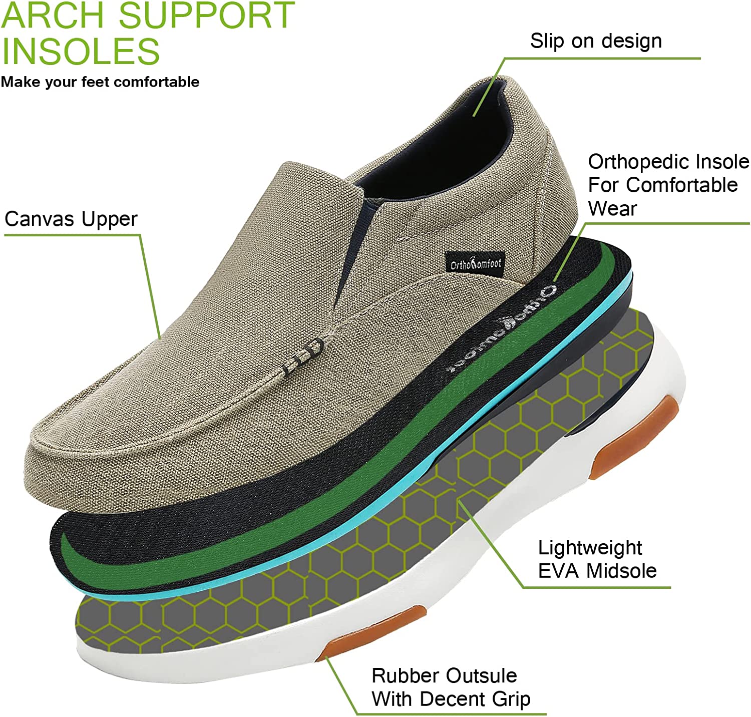 OrthoComfoot Men's Slip On Loafers,Arch Support Boat Shoes for Extra Cushioning and Pain Relief,Canvas Leisure Vintage Flat Walking Shoes