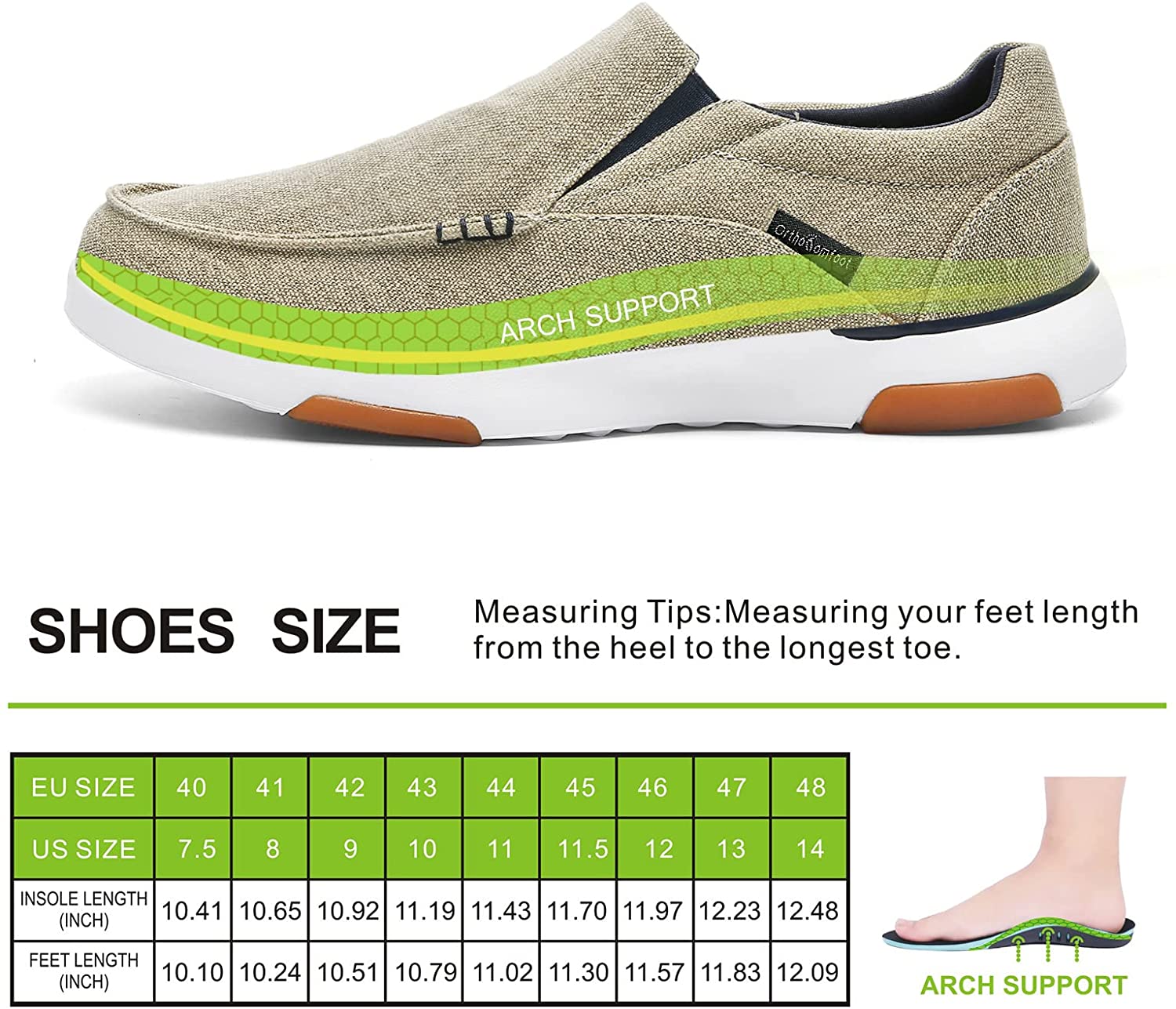 OrthoComfoot Men's Slip On Loafers,Arch Support Boat Shoes for Extra Cushioning and Pain Relief,Canvas Leisure Vintage Flat Walking Shoes