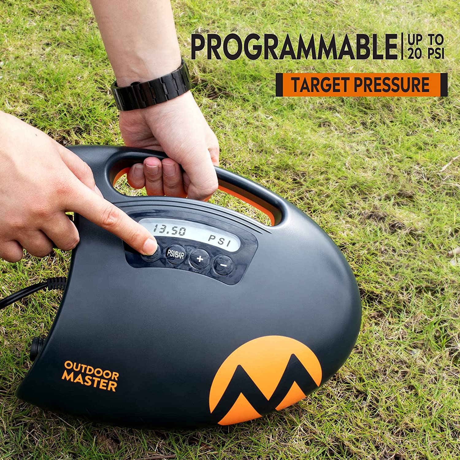 OutdoorMaster 20PSI High Pressure SUP Air Pump The Shark - Intelligent Dual Stage Inflation & Auto-Off Feature, Deflation Function, 12V DC Car Connector, for Inflatable Stand Up Paddle Boards, Boats