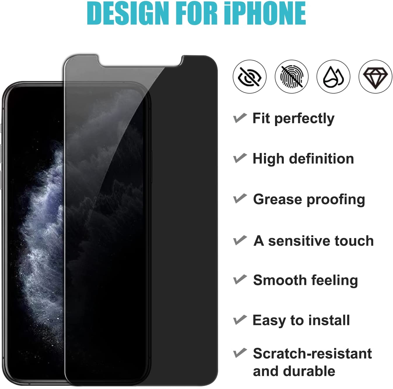 Pehael [2 Pack] Privacy Screen Protector for iPhone 11 Pro Max/iPhone Xs Max Anti-Spy Tempered Glass Film Upgrade 9H Hardness Case Friendly Easy Installation Bubble Free 3D Touch Support [6.5 inch]