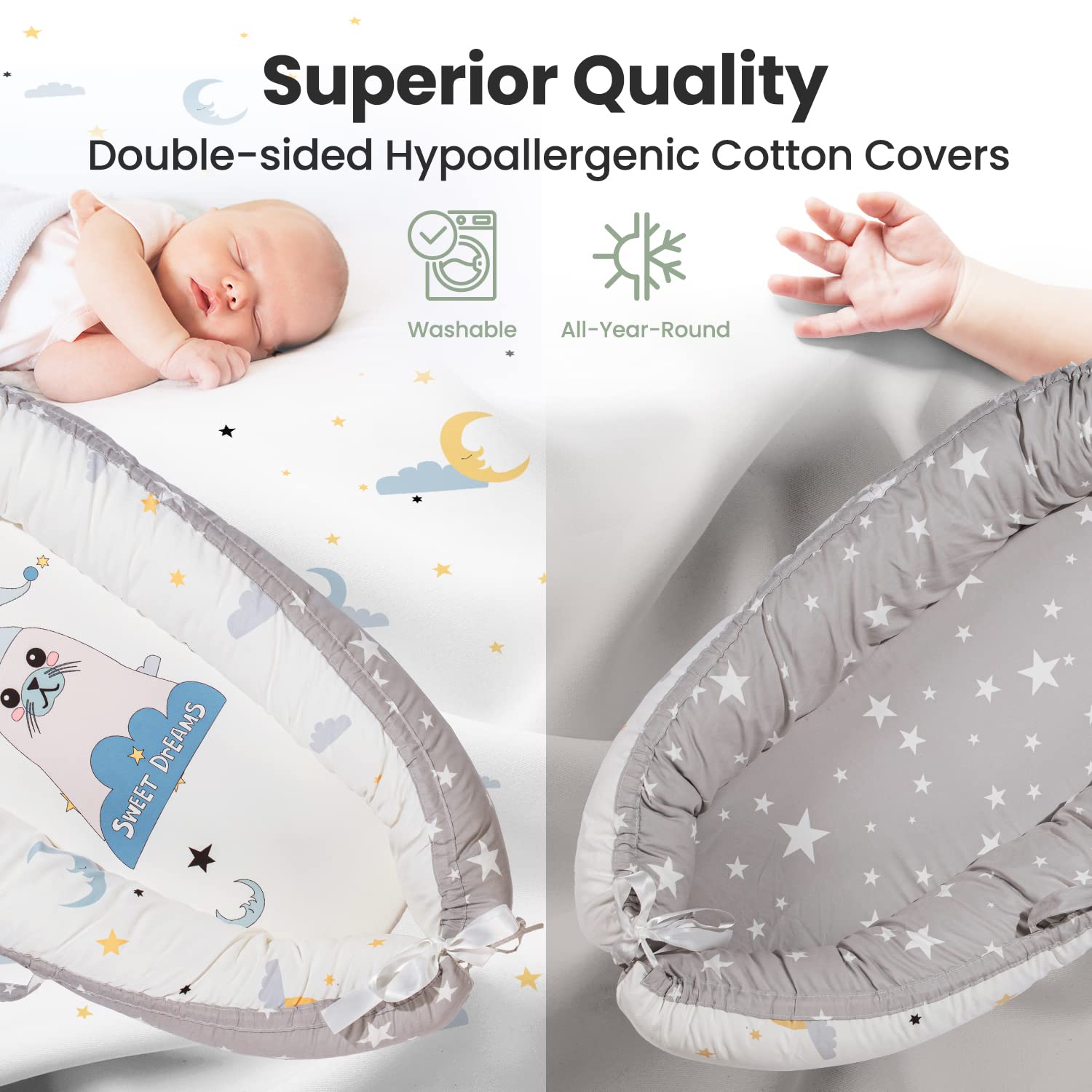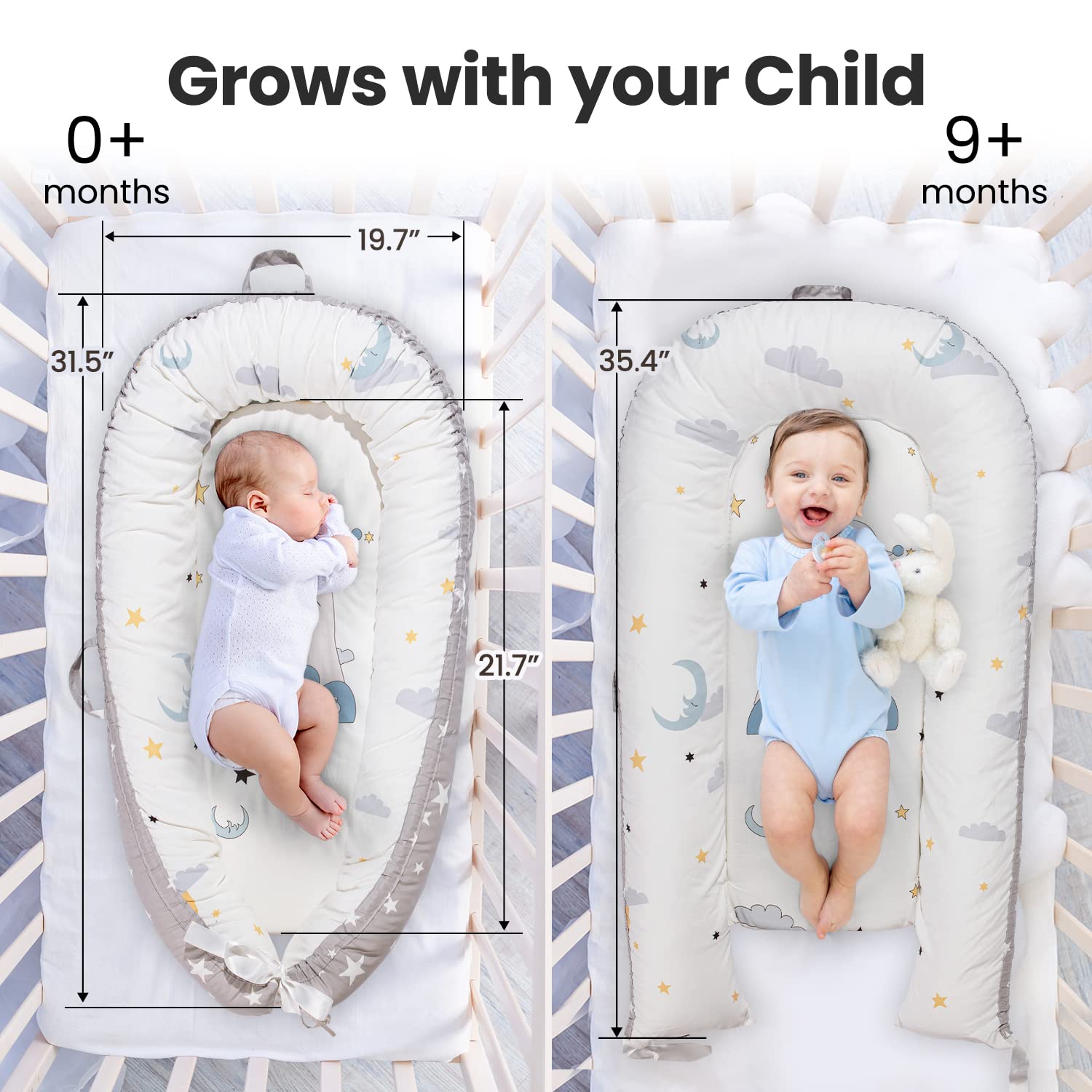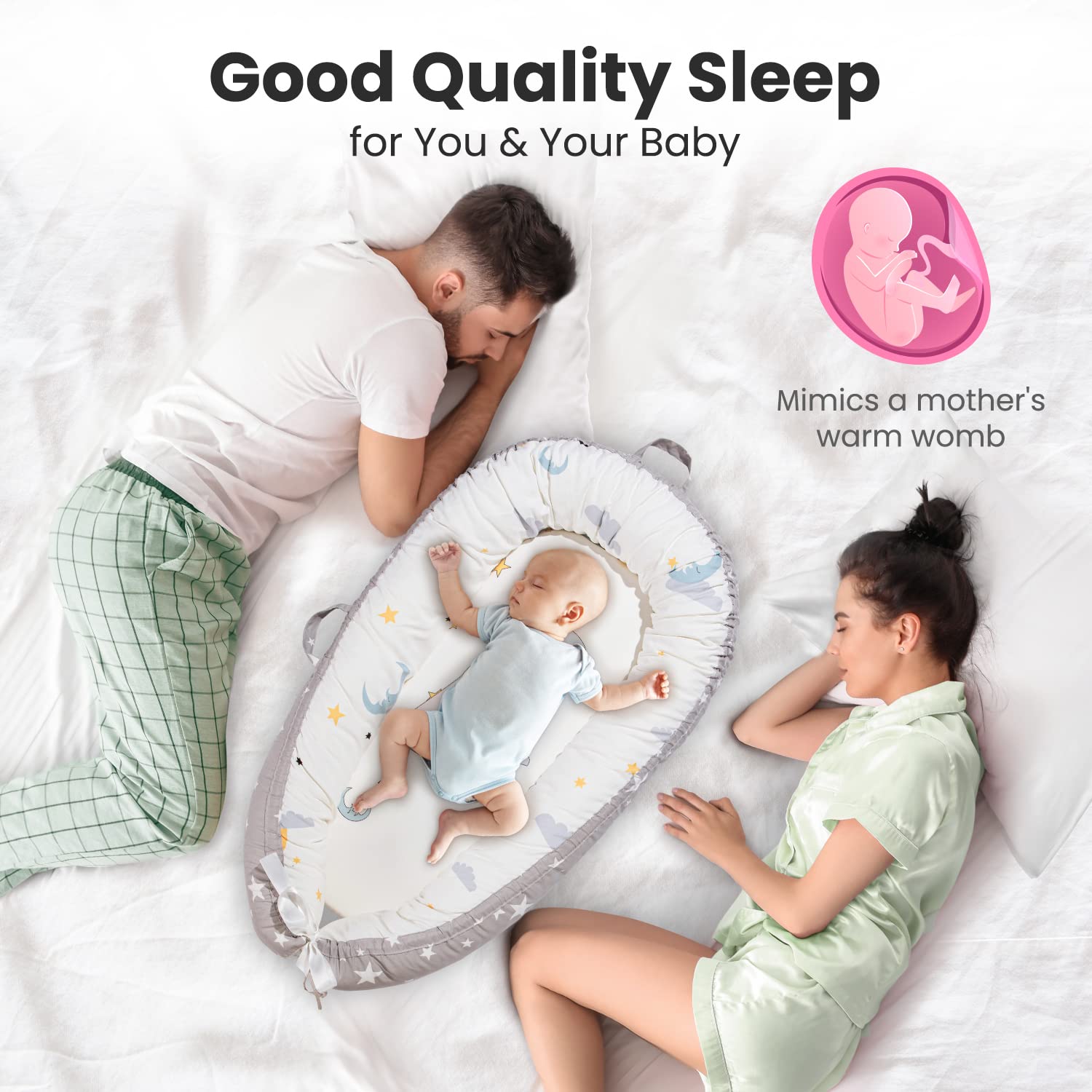 Pillani Baby Lounger - Baby Nest for 0-12 Months, Breathable Co Sleeper for Baby, Newborn Lounger for Cosleeping in Bed - Sleep Portable Bassinet, Newborn Essentials Infant Pillow (Seal)