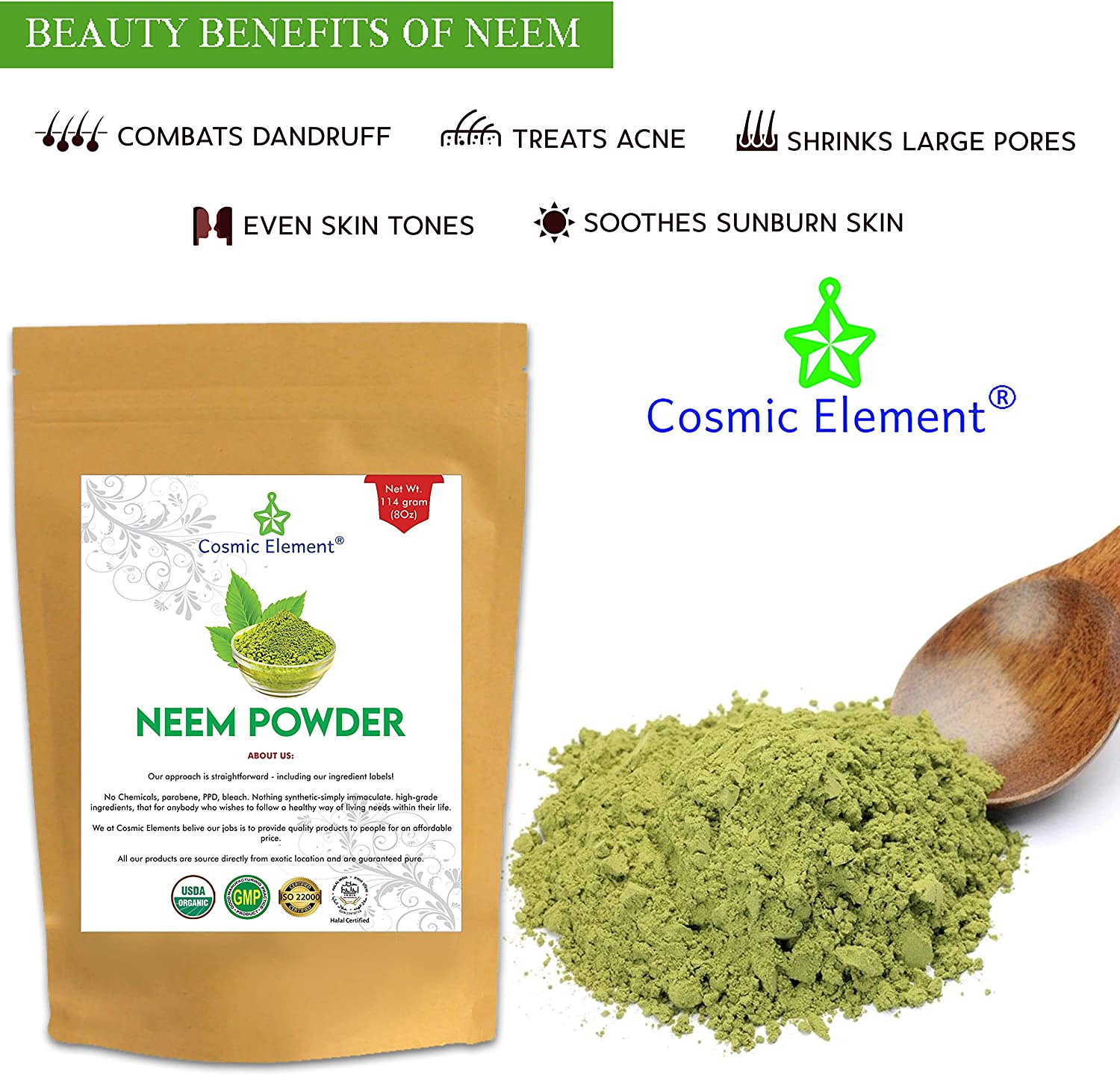 Pure Neem Powder | Pure Wild Crafted Neem Leaf Powder | Very Bitter Neem Supplement for Hair, Skin, Nails and Detox - Azadirachta Indica (4 oz)
