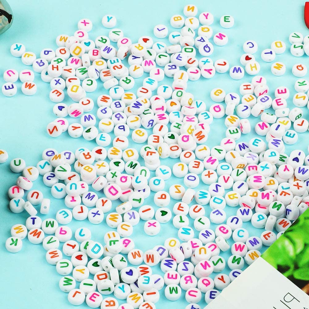 Quefe 1680pcs 4 x 7mm Letter Beads White Round Acrylic Colorful Alphabet Beads for Jewelry Making Bracelets Necklaces Key Chains, Each Letter Included