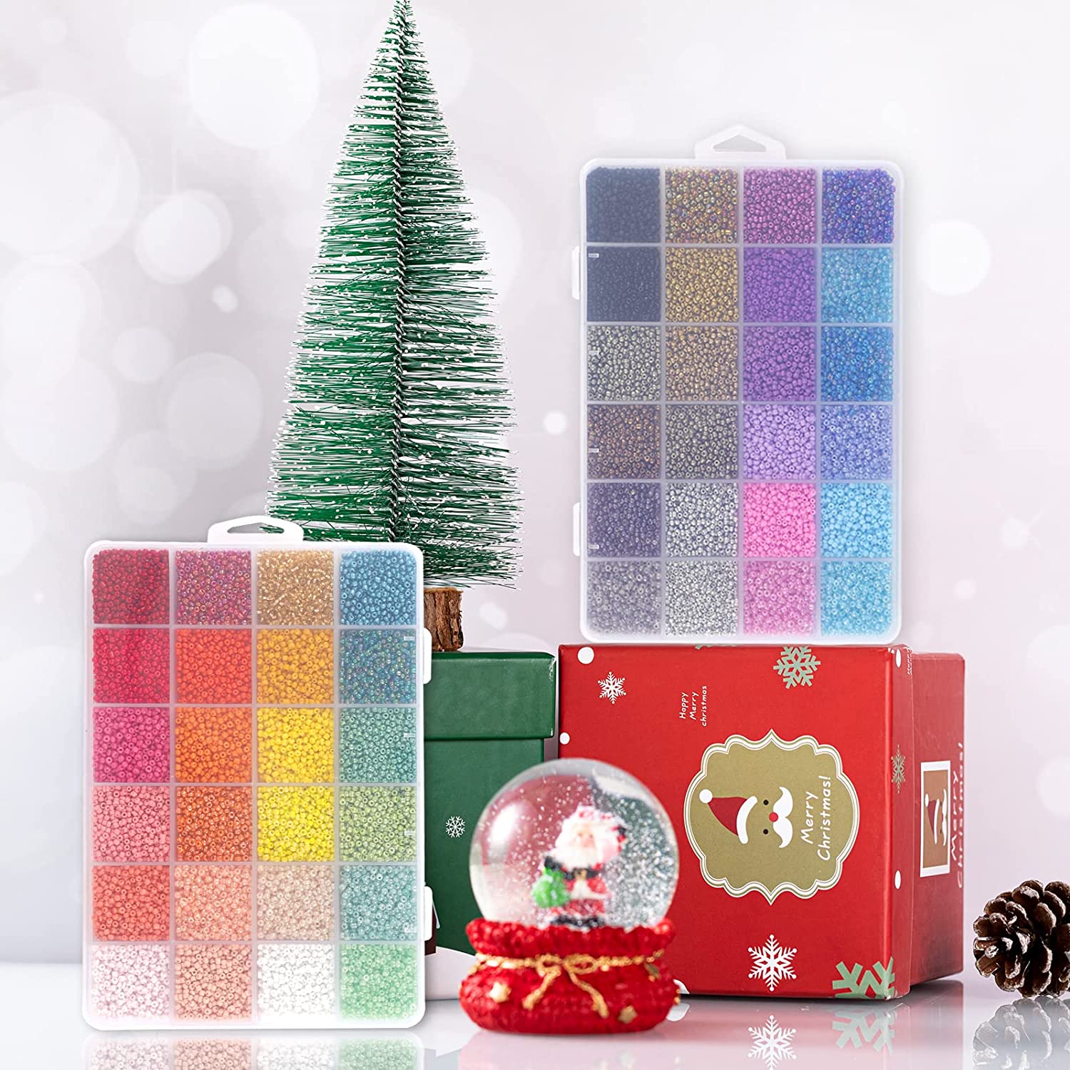 Quefe 36000pcs Glass Seed Beads 2mm Beads 48 Colors 12/0 Small Bracelets Beads and 260 Letter Beads for Jewelry Making Crafts