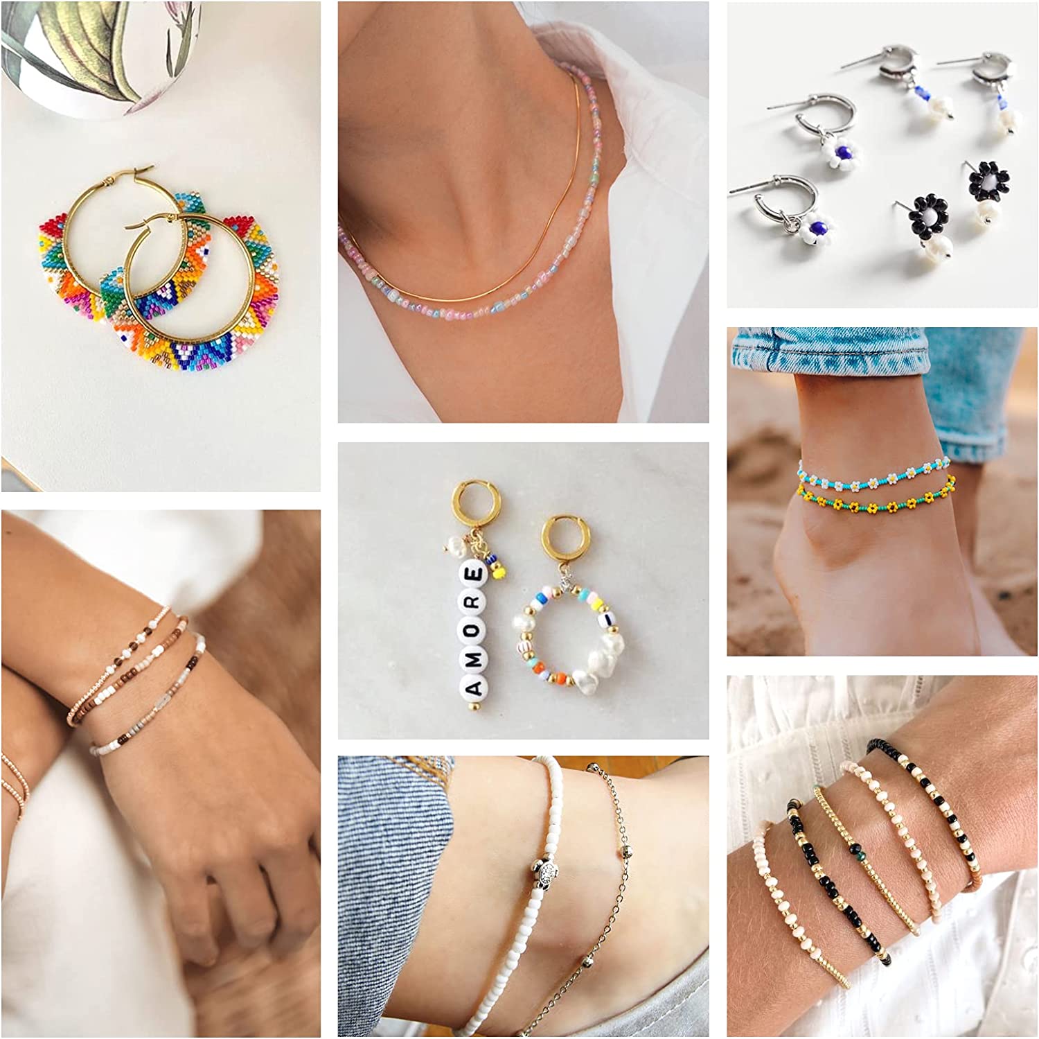 Quefe 36000pcs Glass Seed Beads 2mm Beads 48 Colors 12/0 Small Bracelets Beads and 260 Letter Beads for Jewelry Making Crafts