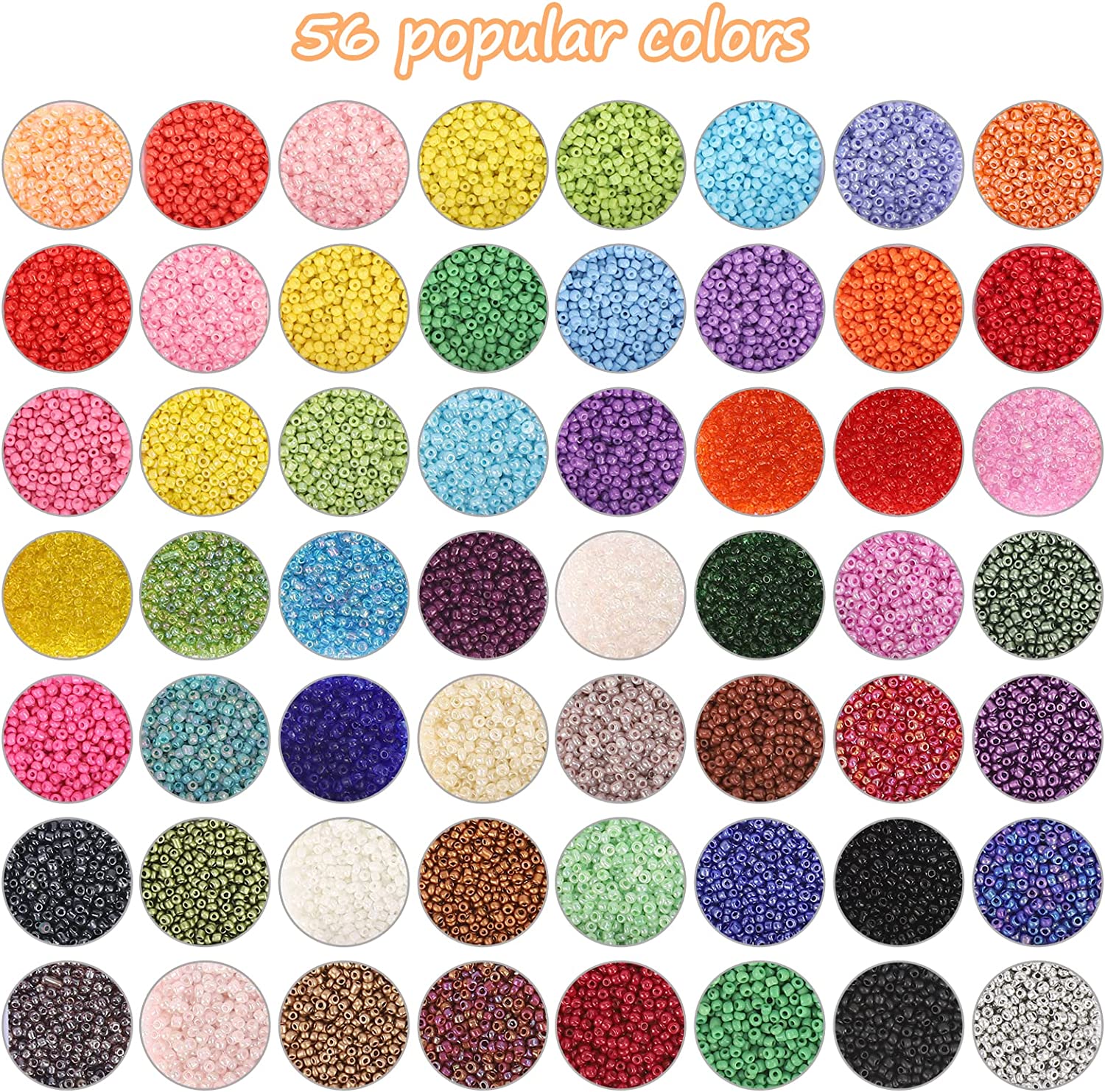 Quefe 45000pcs Glass Seed Beads 56 Colors 2mm Small Beads for Jewelry Making Kit, 260pcs Letter Beads Smiley Face Beads Heart Beads Pearls Rings Lobster Locks Pendants Charms Elastic String