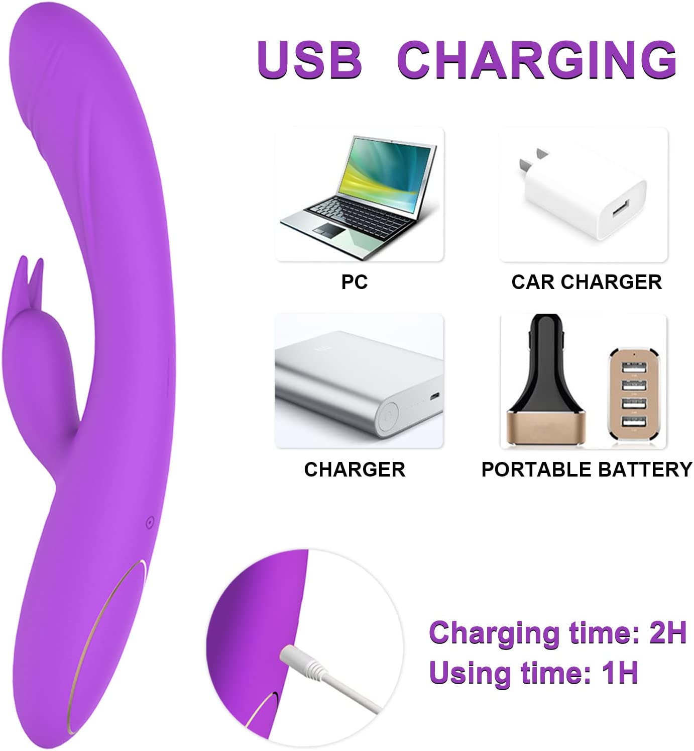 Rabbit Vibrator Sex Toys for Women, LUGAGA G Spot Rose Vibrator Dildo with 10 Vibrations and One-Click Enhanced Mode, Powerful Dual Motors Clitorals Stimulator for Women or Couple(Purple)