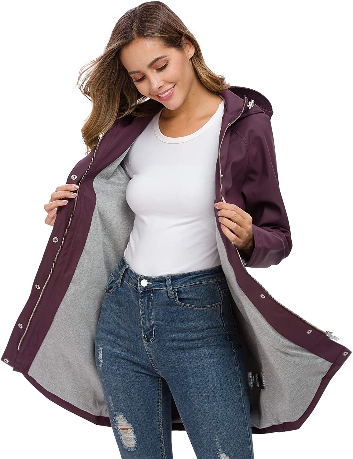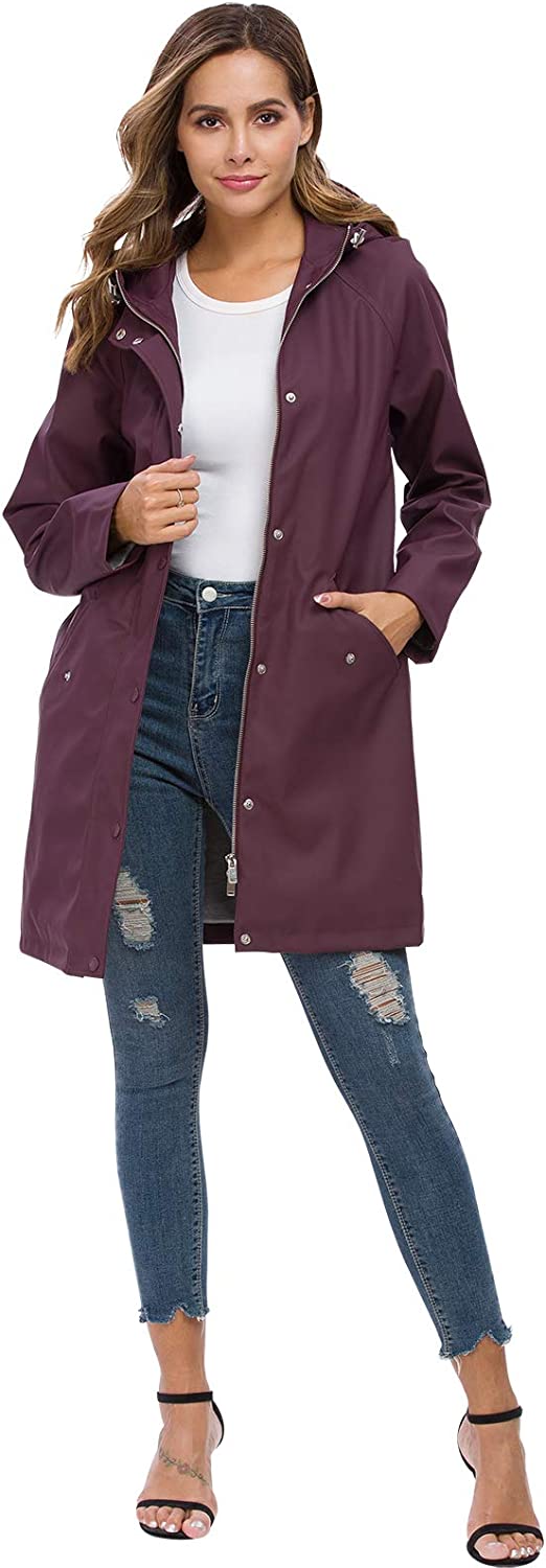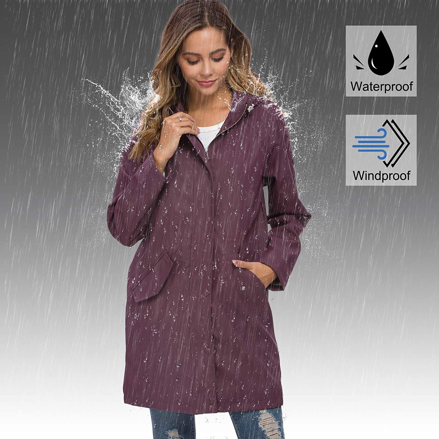 Raincoat Women, Fahsyee Rain Jacket Waterproof Raincoat Hooded Windbreaker Outdoor Long Active