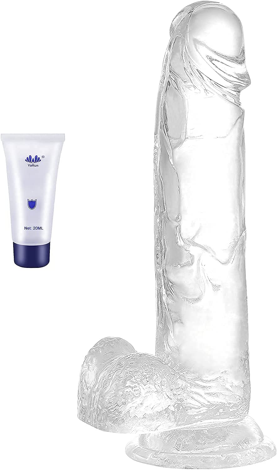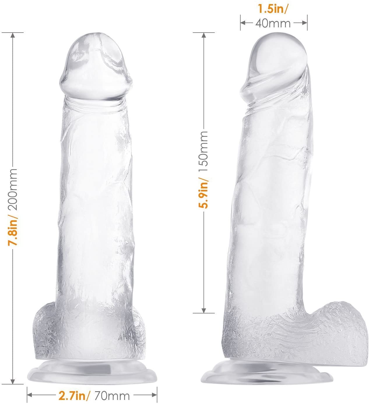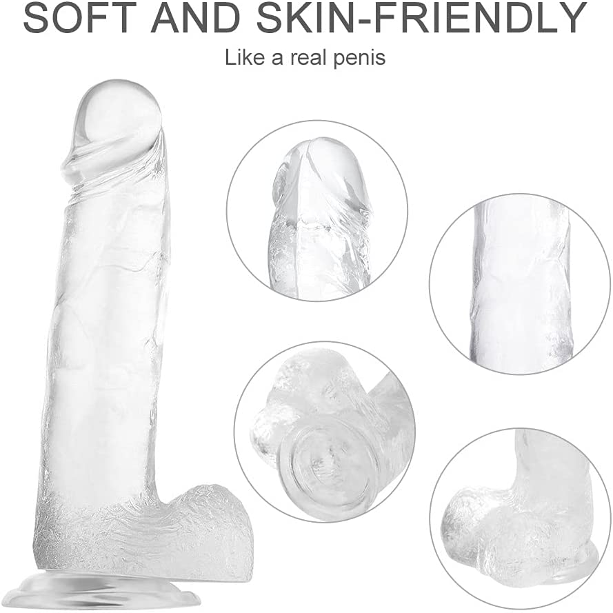 Realistic Dildo with Suction Cup, 7.5 Inch Clear Transparent Huge Dildo for Hands-Free Play, G Spot Stimulator Anal Butt Plug Sex Toys-Adult Sex Toy for Women Men