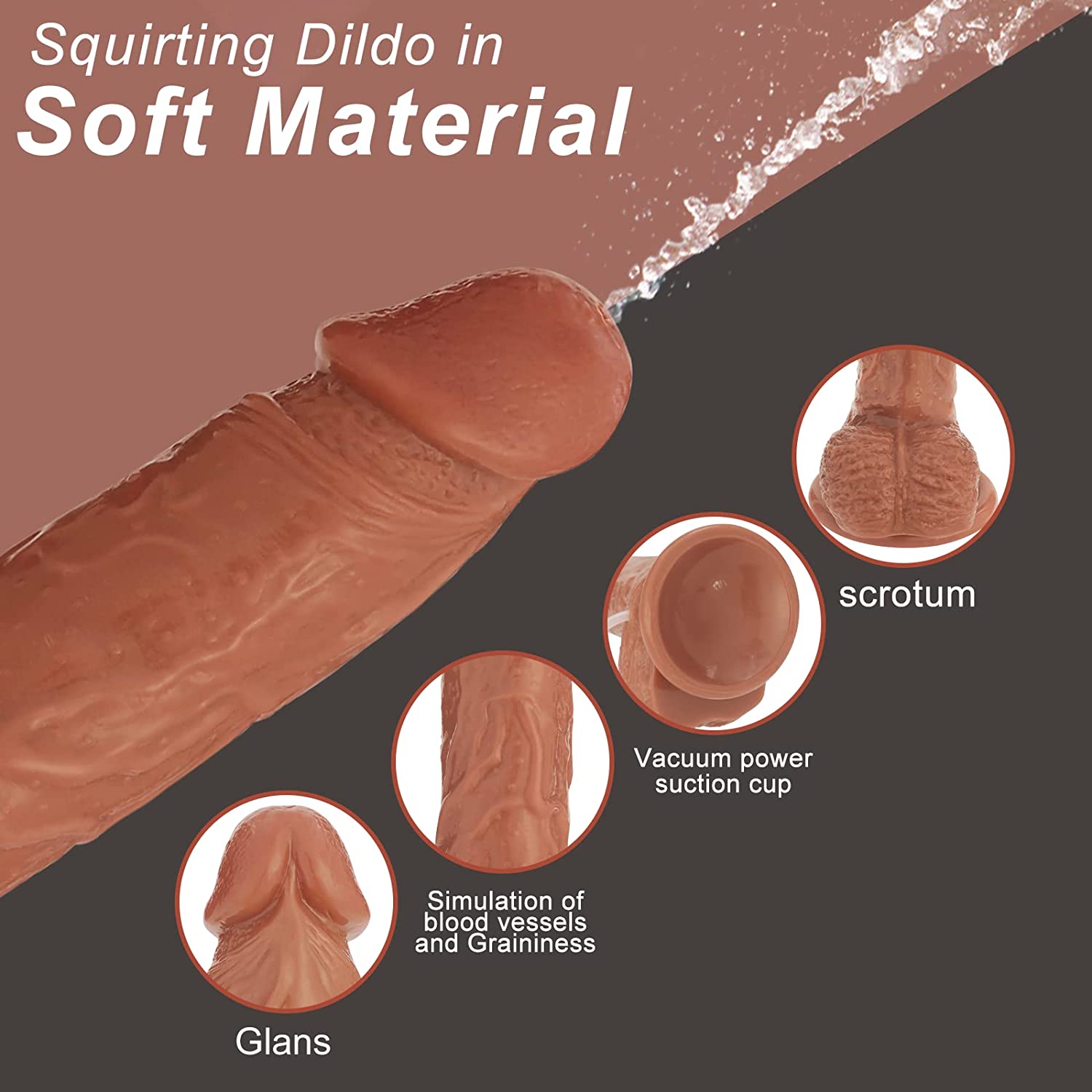Realistic Squirting Dildo Ejaculating Penis for Beginners with Strong Suction Cup for Hands-Free Play,Soft Dildo with Curved Shaft and Balls for Women G-Spot and Anal Prostate Play 8.07 inch