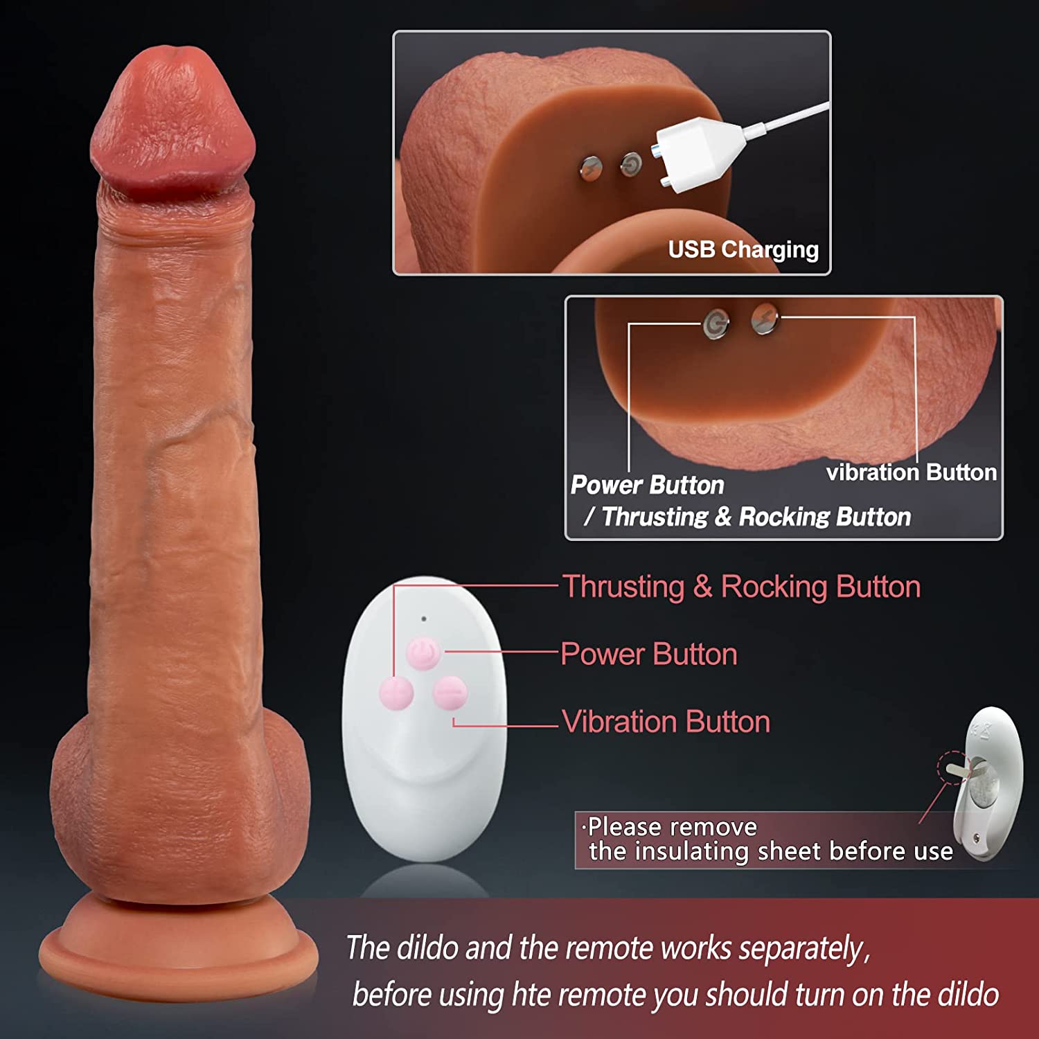 Realistic Vibrating & Thrusting Dildo with 6 Thrust Modes and 10 Vibration Modes, Fake Penis with Strong Suction Cup for G Spot Stimulation Anal Pleasure, Adult Sex Toys for Women and Men