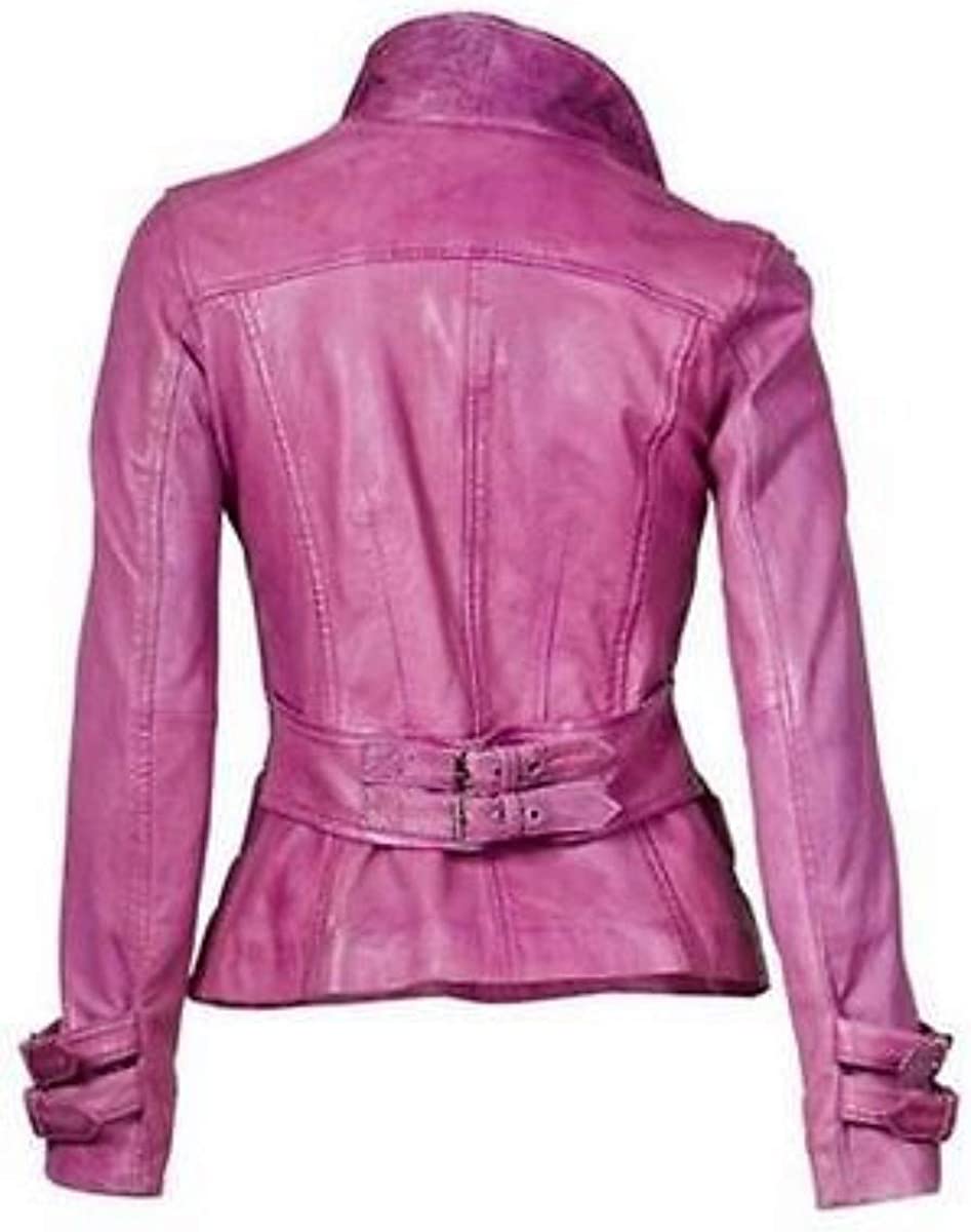 RedSeam Women's Genuine Lambskin Leather Blazer Slim Fit Jacket Four Button Coat Hot Pink