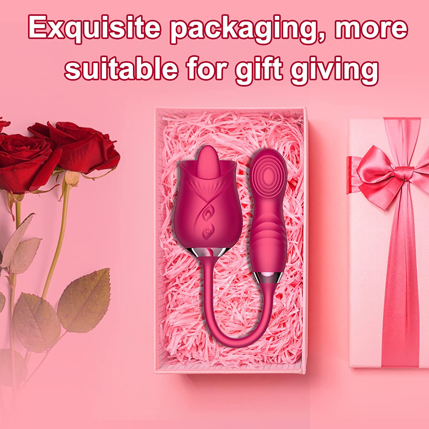 Rose Toy for Woman - Tongue Licking Vibrator Wiggly Dildo Sex Toys with 20 Modes, Oral Sex Toy Clitoris Nipple Sex Stimulator with Butt Plug Sex Toys for Women Couples, Red