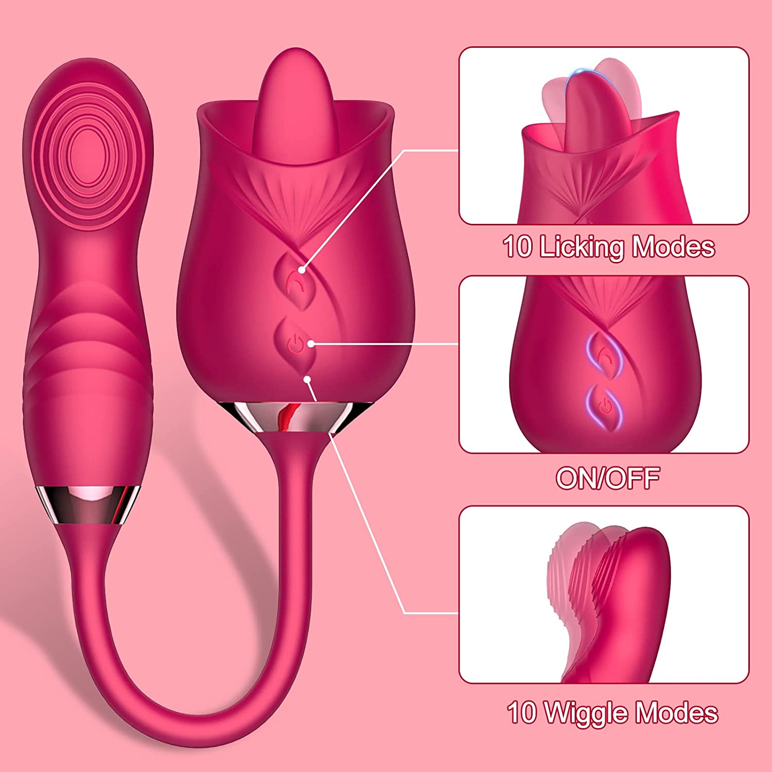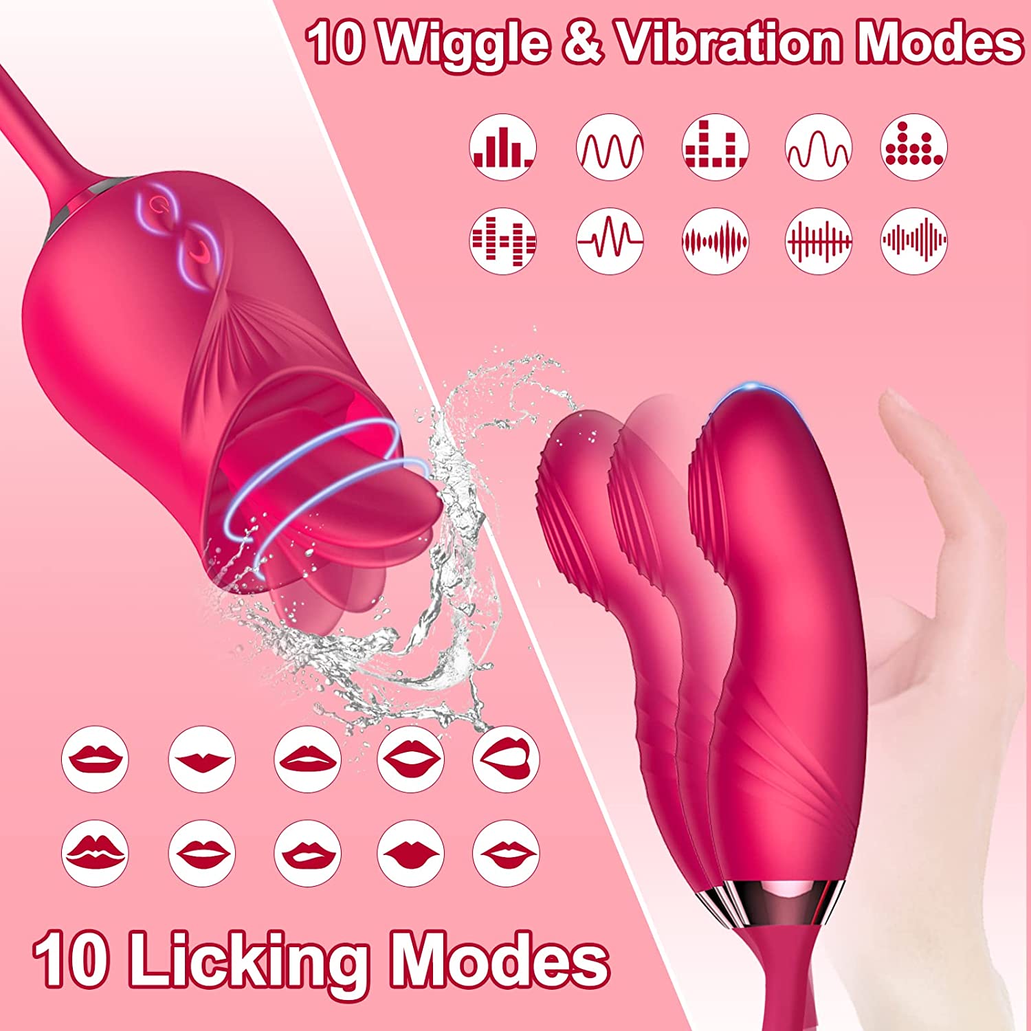 Rose Toy for Woman - Tongue Licking Vibrator Wiggly Dildo Sex Toys with 20 Modes, Oral Sex Toy Clitoris Nipple Sex Stimulator with Butt Plug Sex Toys for Women Couples, Red