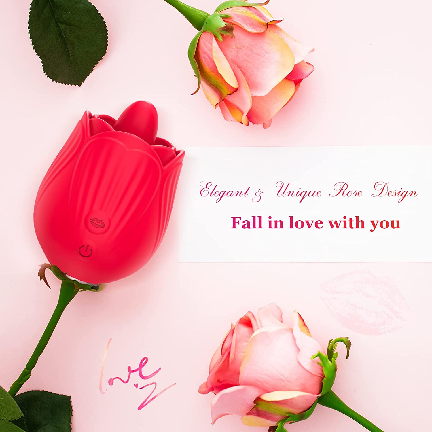 Rose Toy Vibrator for Women, Clitoral Licking Tongue Vibrator, Clitoris Nipples Anal Stimulator with 10 Licking 10 Vibration Modes, Waterproof Rechargeable Adult Sensory Sex Toys for Women Couples